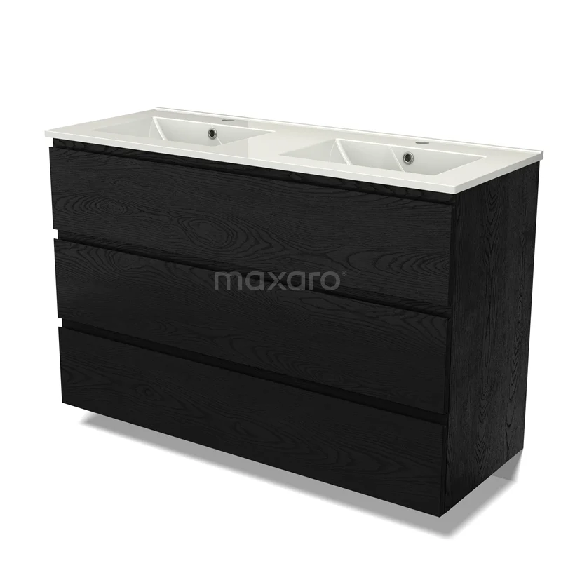 Modulo Waschtische | 120 cm Schwarze Eiche Grifflos front Keramik 3 Schubladen