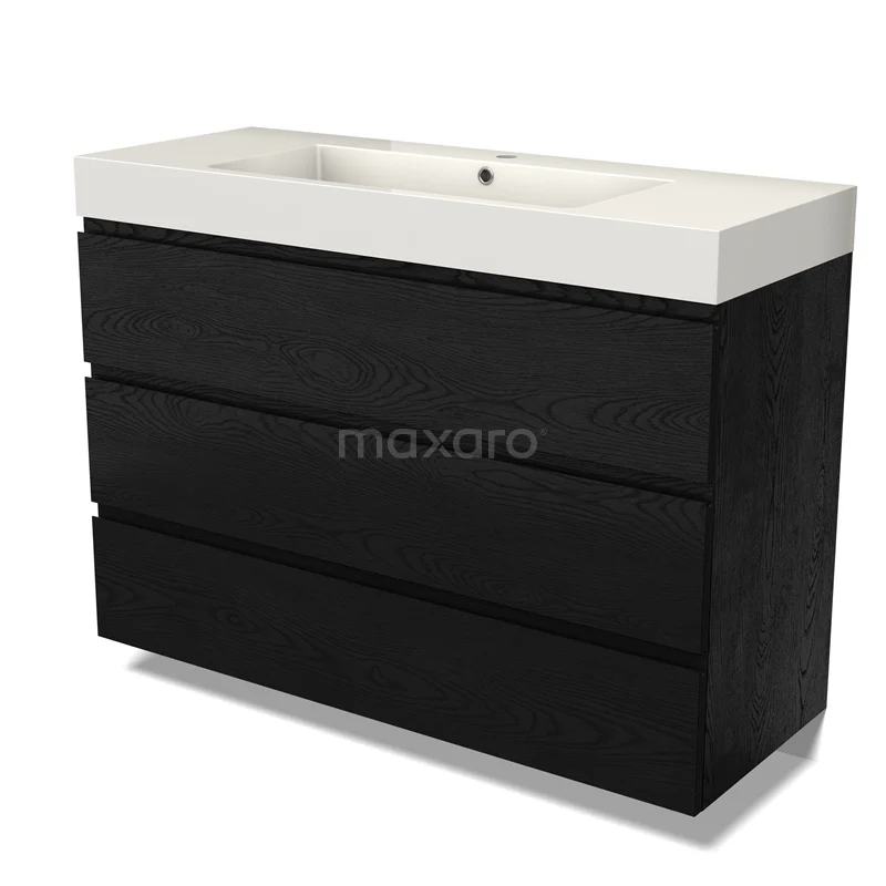 Modulo Waschtische | 120 cm Schwarze Eiche Grifflos front Mineralguss 3 Schubladen