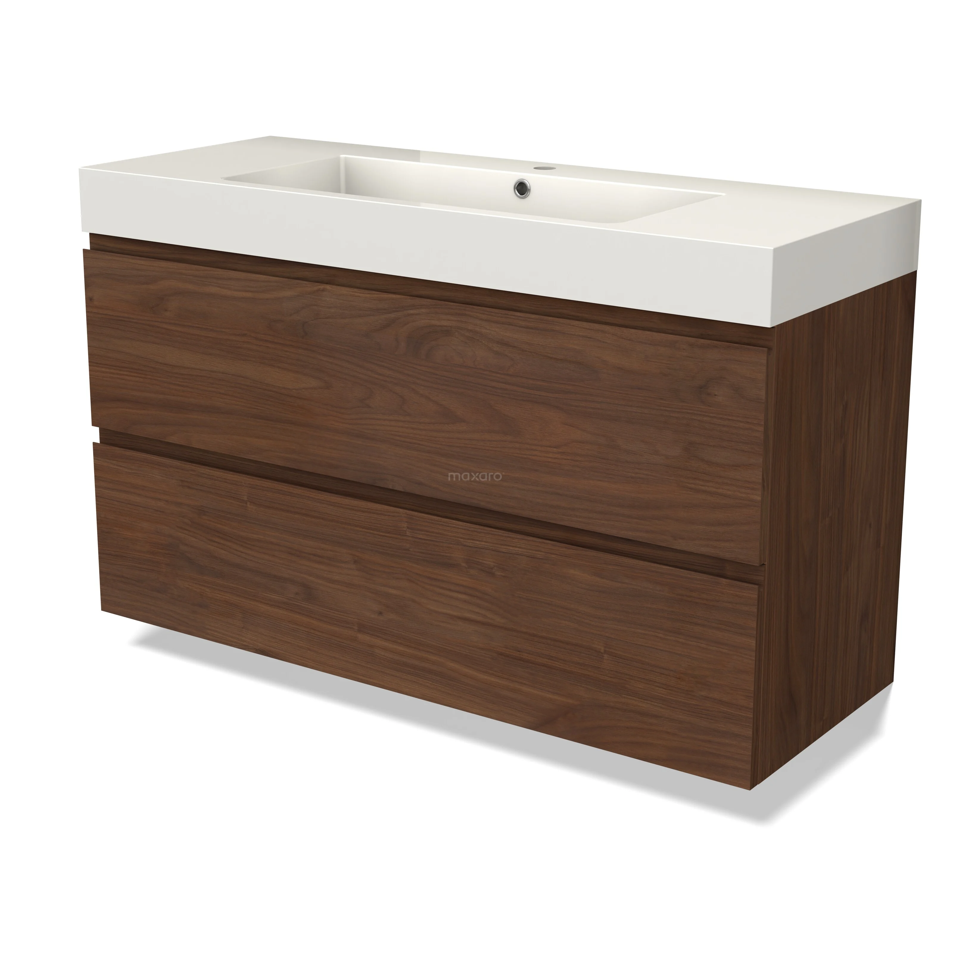 Modulo Waschtische | 120 cm Walnuss Grifflos front Mineralguss 2 übereinanderliegende Schubladen