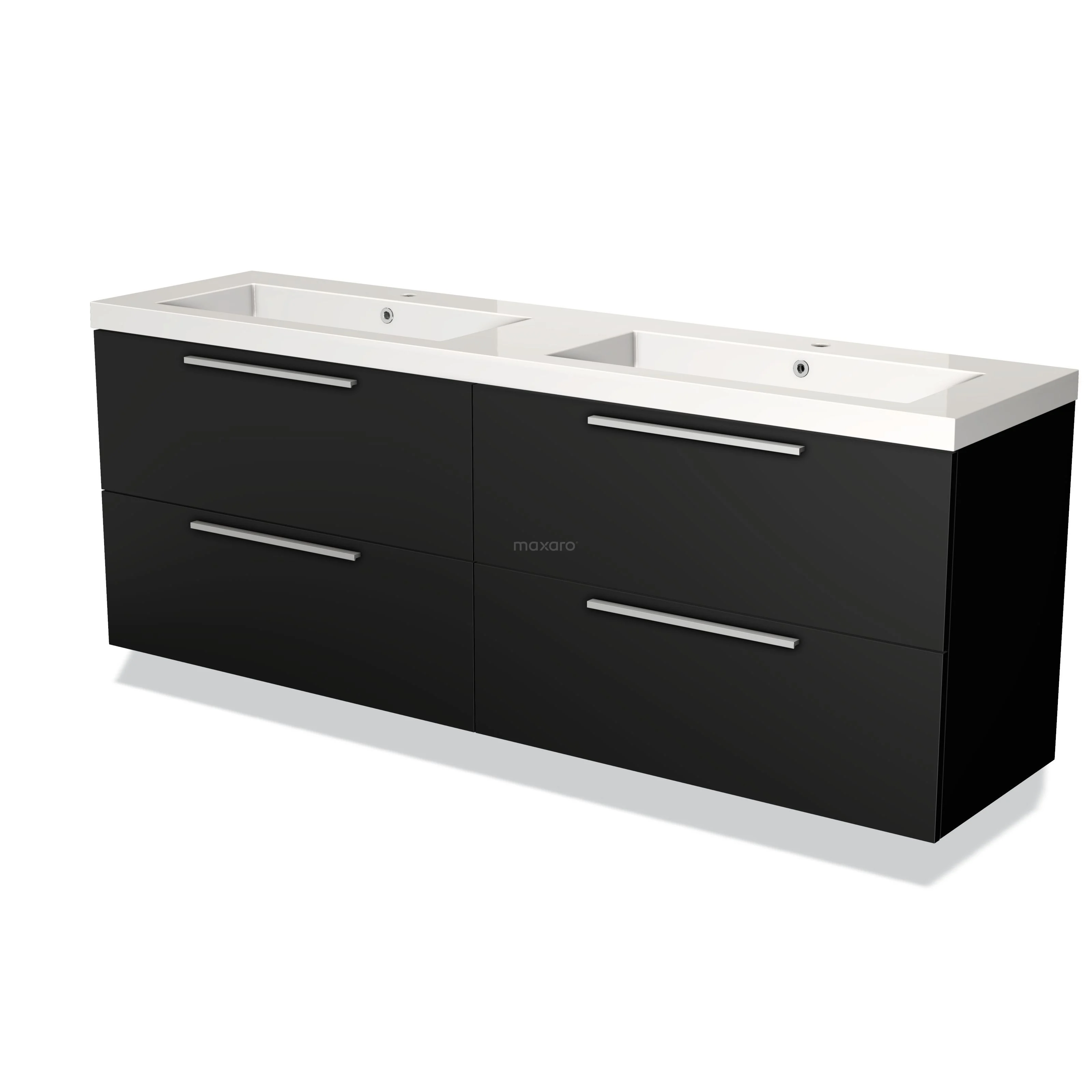 Modulo Waschtische | 180 cm Matt Schwarz Flach front Mineralguss 4 Schubladen