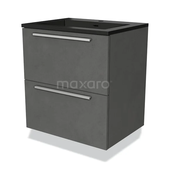 Modulo Waschtische | 60 cm Dunkelgrauer Beton Flach front Quarz 2 übereinanderliegende Schubladen