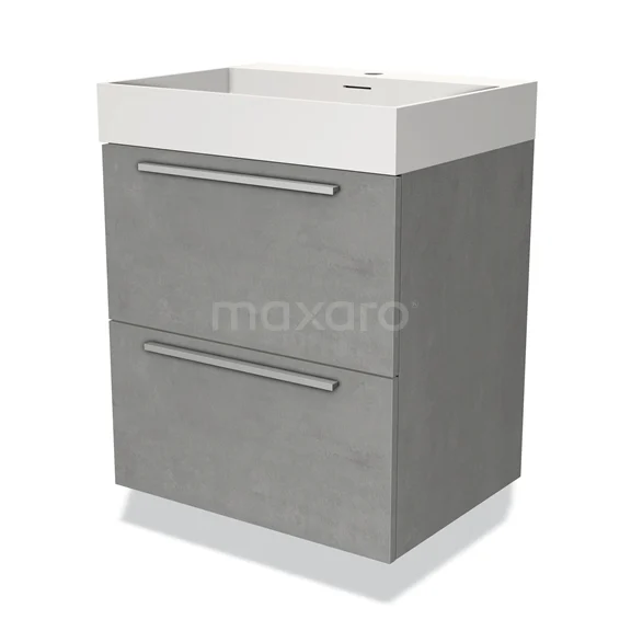 Modulo Waschtische | 60 cm Hellgrauer Beton Flach front Solid Surface 2 übereinanderliegende Schubladen