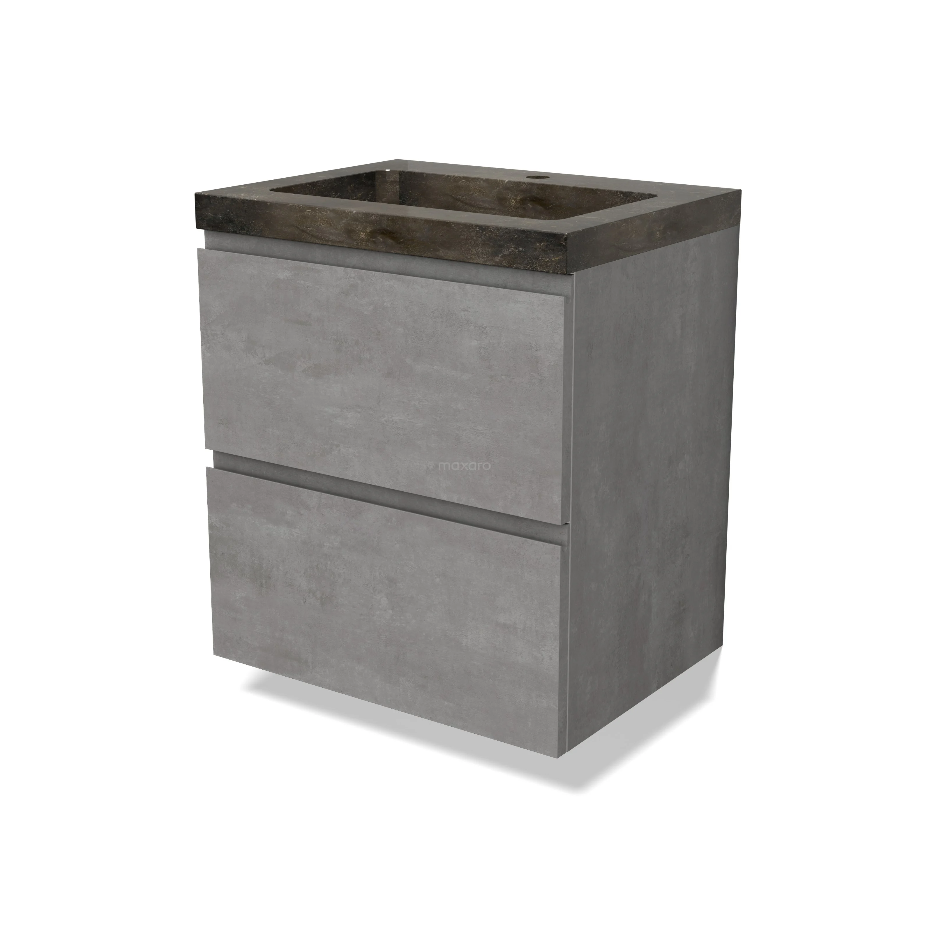 Modulo Waschtische | 60 cm Hellgrauer Beton Grifflos front Naturstein 2 übereinanderliegende Schubladen