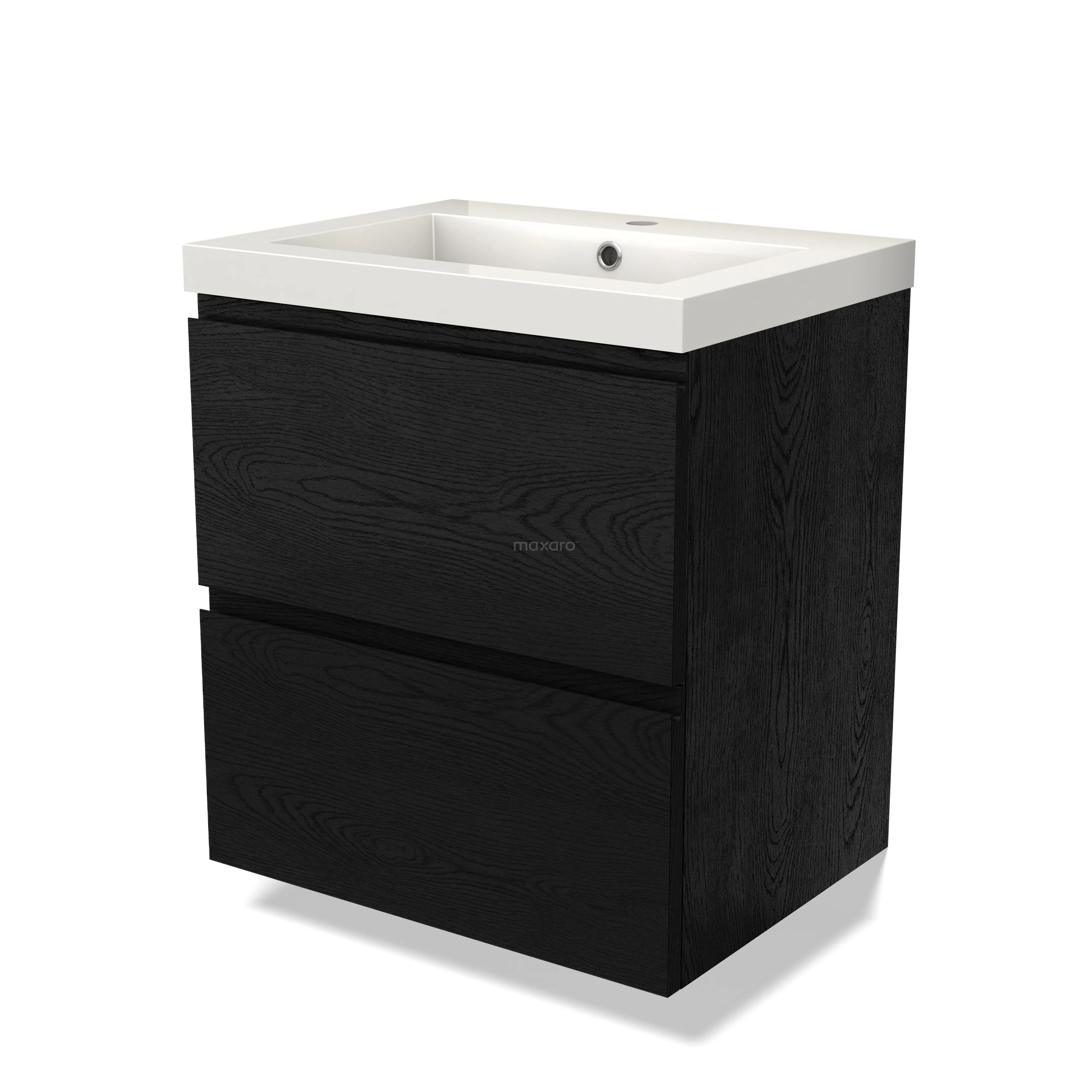 Modulo Waschtische | 60 cm Schwarze Eiche Grifflos front Mineralguss 2 übereinanderliegende Schubladen