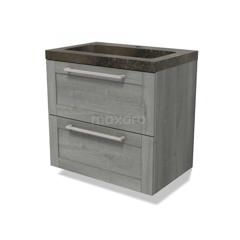Modulo Waschtische | 70 cm Graue Eiche Rahmen front Naturstein 2 übereinanderliegende Schubladen