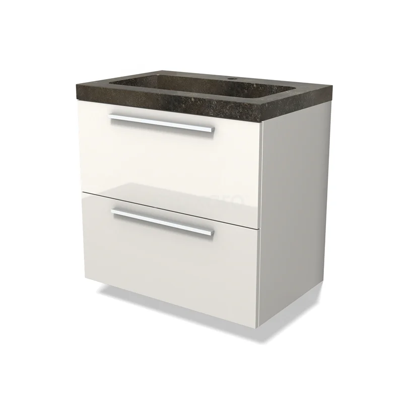 Modulo Waschtische | 70 cm Hochglanz Weiß Flach front Naturstein 2 übereinanderliegende Schubladen