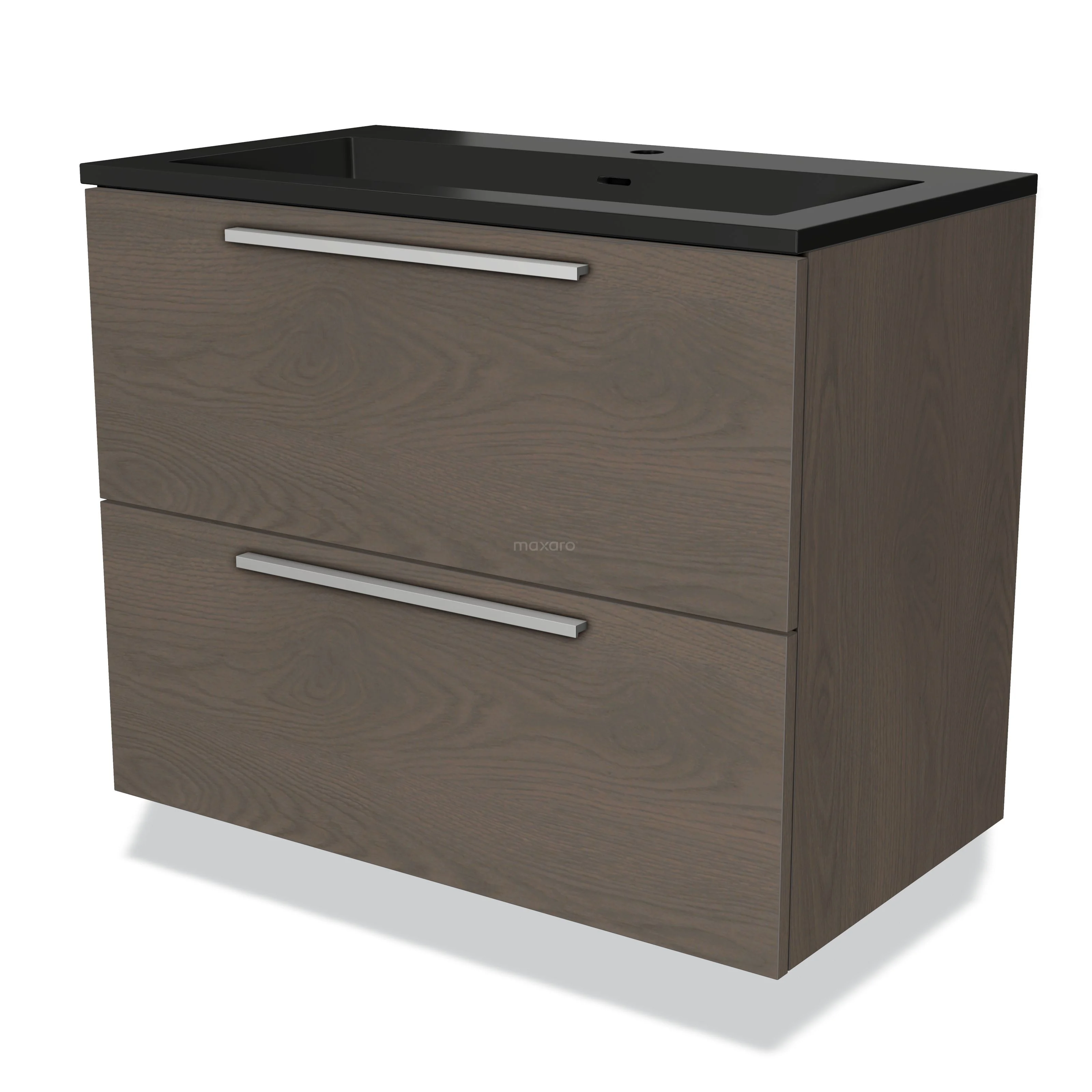 Modulo Waschtische | 80 cm Dunkelbraune Eiche Flach front Quarz 2 übereinanderliegende Schubladen