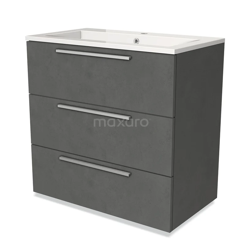 Modulo Waschtische | 80 cm Dunkelgrauer Beton Flach front Mineralguss 3 Schubladen