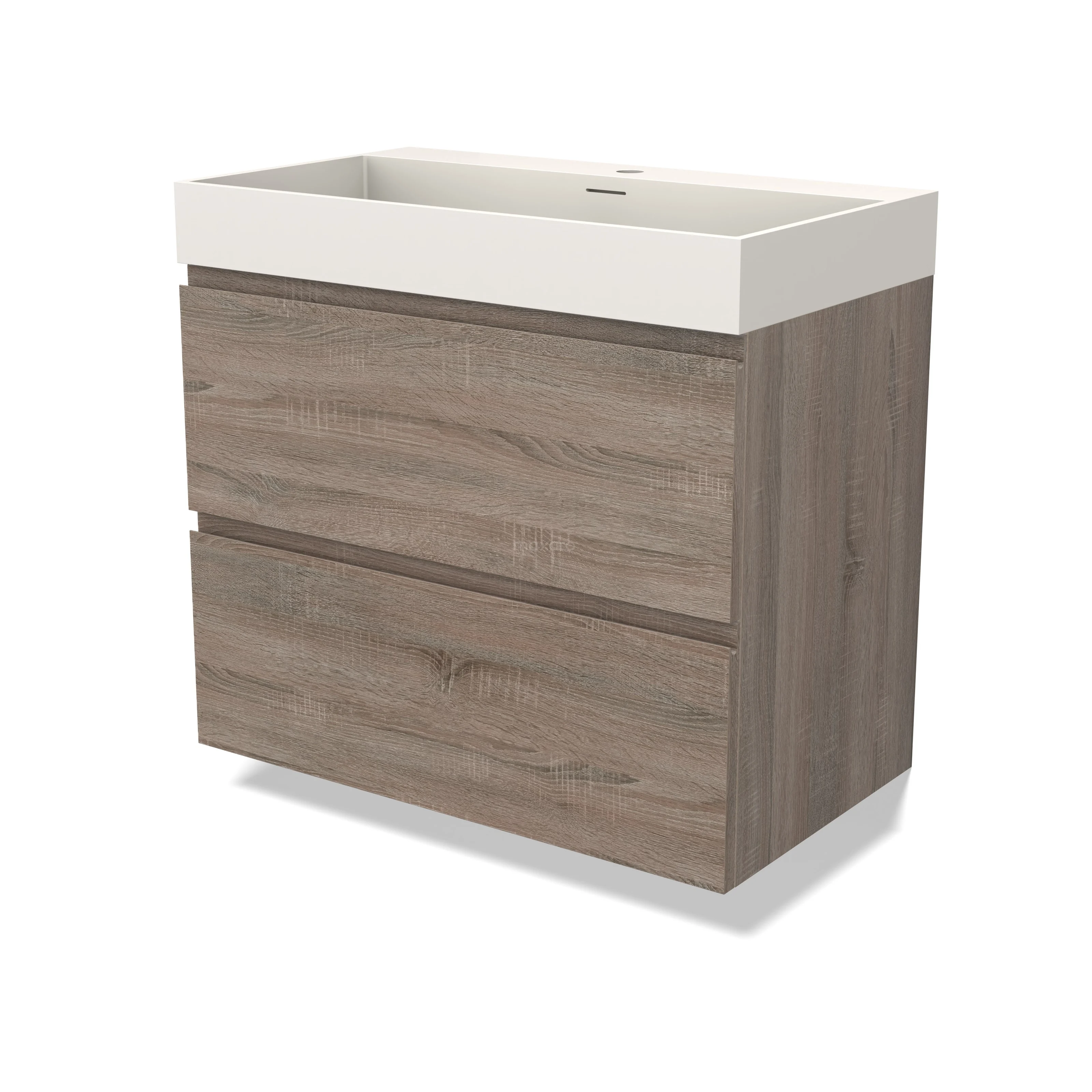 Modulo Waschtische | 80 cm Eiche Grifflos front Solid Surface 2 übereinanderliegende Schubladen