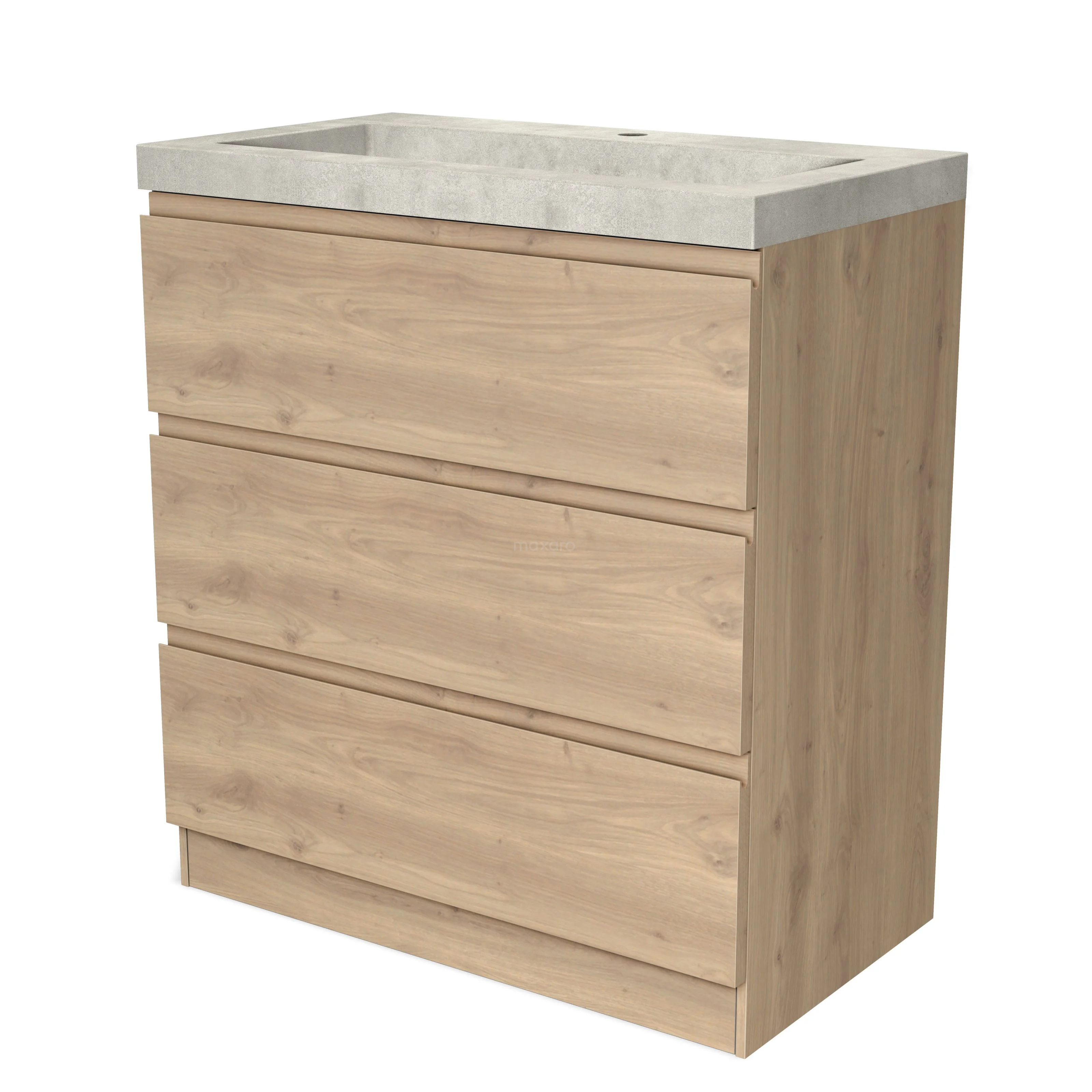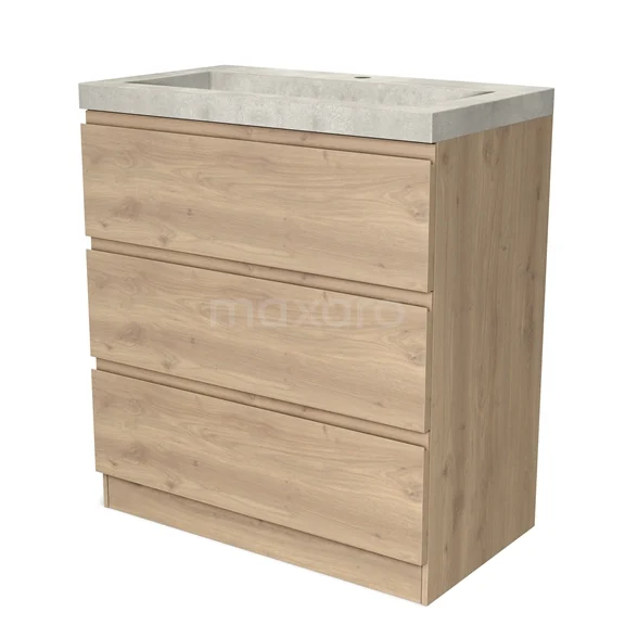 Modulo Waschtische | 80 cm Hellbraune Eiche Grifflos front Beton 3 stehende Schubladen