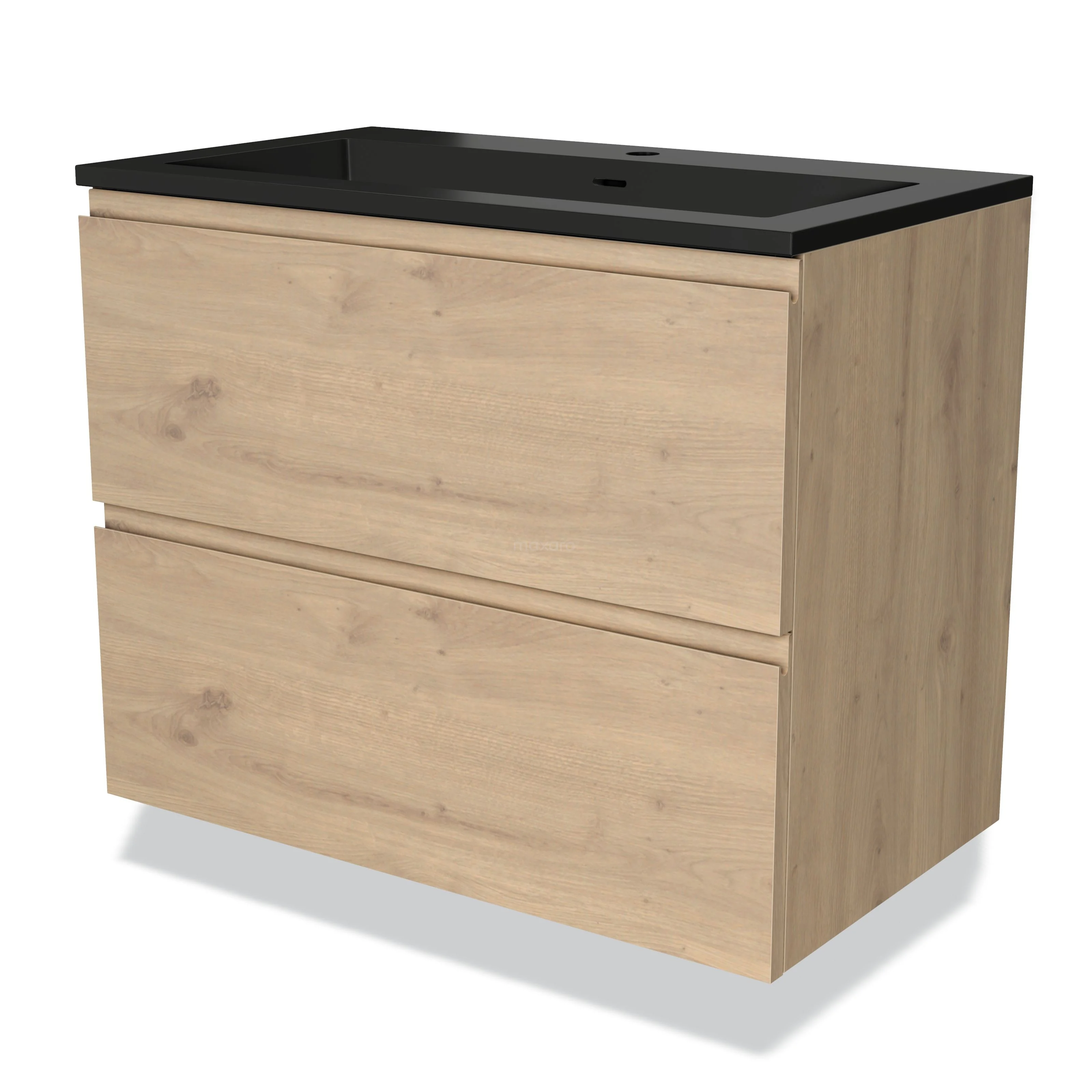 Modulo Waschtische | 80 cm Hellbraune Eiche Grifflos front Quarz 2 übereinanderliegende Schubladen