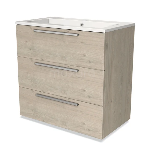 Modulo Waschtische | 80 cm Hellgraue Eiche Flach front Mineralguss 3 Schubladen