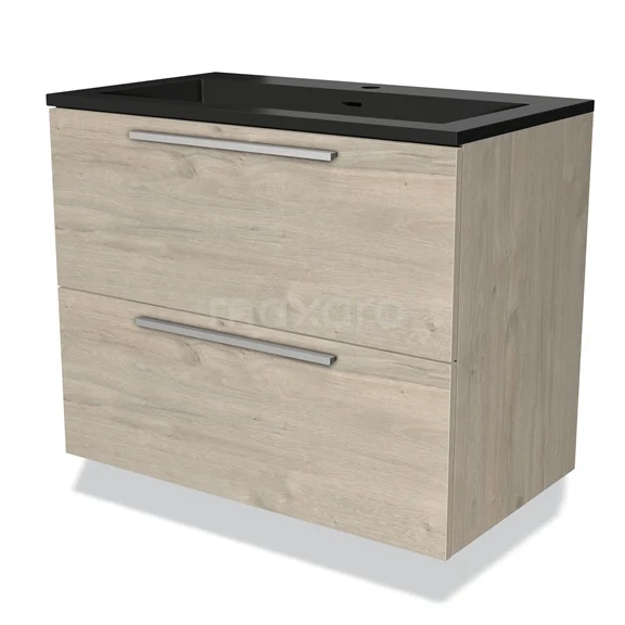 Modulo Waschtische | 80 cm Hellgraue Eiche Flach front Quarz 2 übereinanderliegende Schubladen