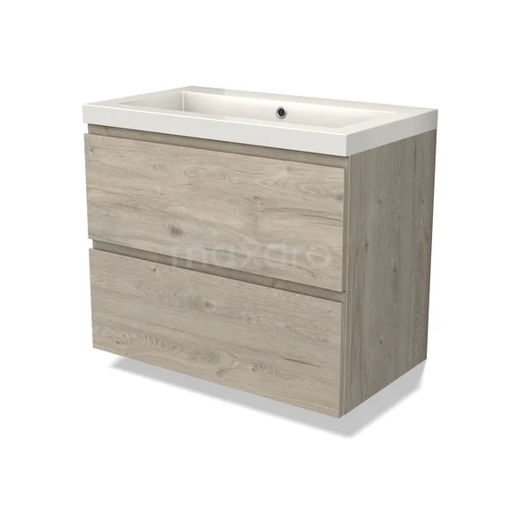 Modulo Waschtische | 80 cm Hellgraue Eiche Grifflos front Mineralguss 2 übereinanderliegende Schubladen
