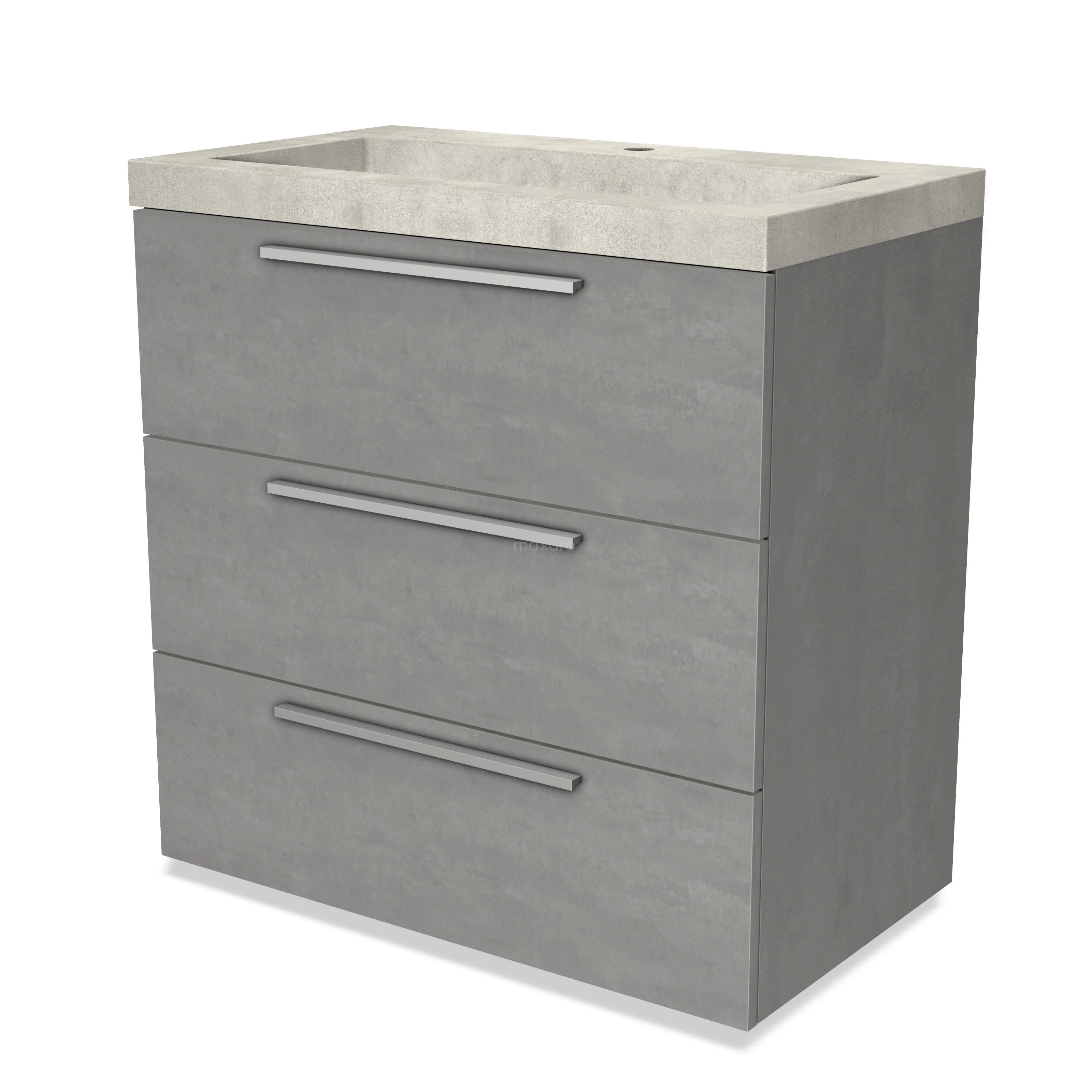 Modulo Waschtische | 80 cm Hellgrauer Beton Flach front Beton 3 Schubladen