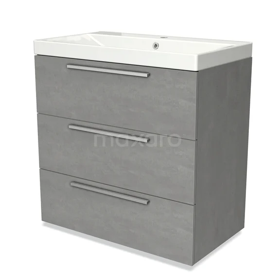 Modulo Waschtische | 80 cm Hellgrauer Beton Flach front Keramik 3 Schubladen