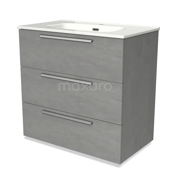 Modulo Waschtische | 80 cm Hellgrauer Beton Flach front Keramik 3 Schubladen