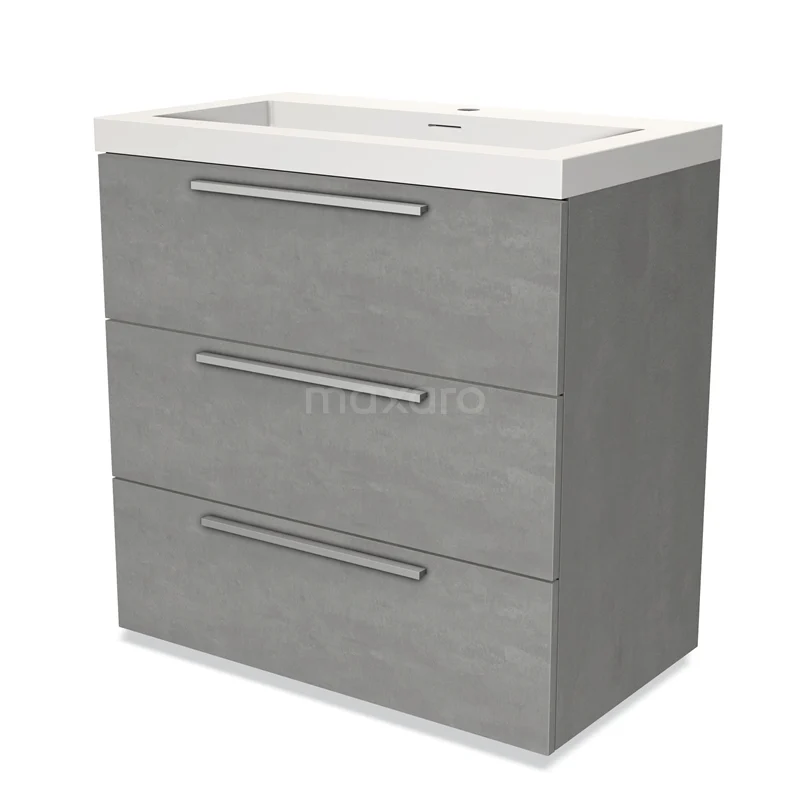 Modulo Waschtische | 80 cm Hellgrauer Beton Flach front Solid Surface 3 Schubladen