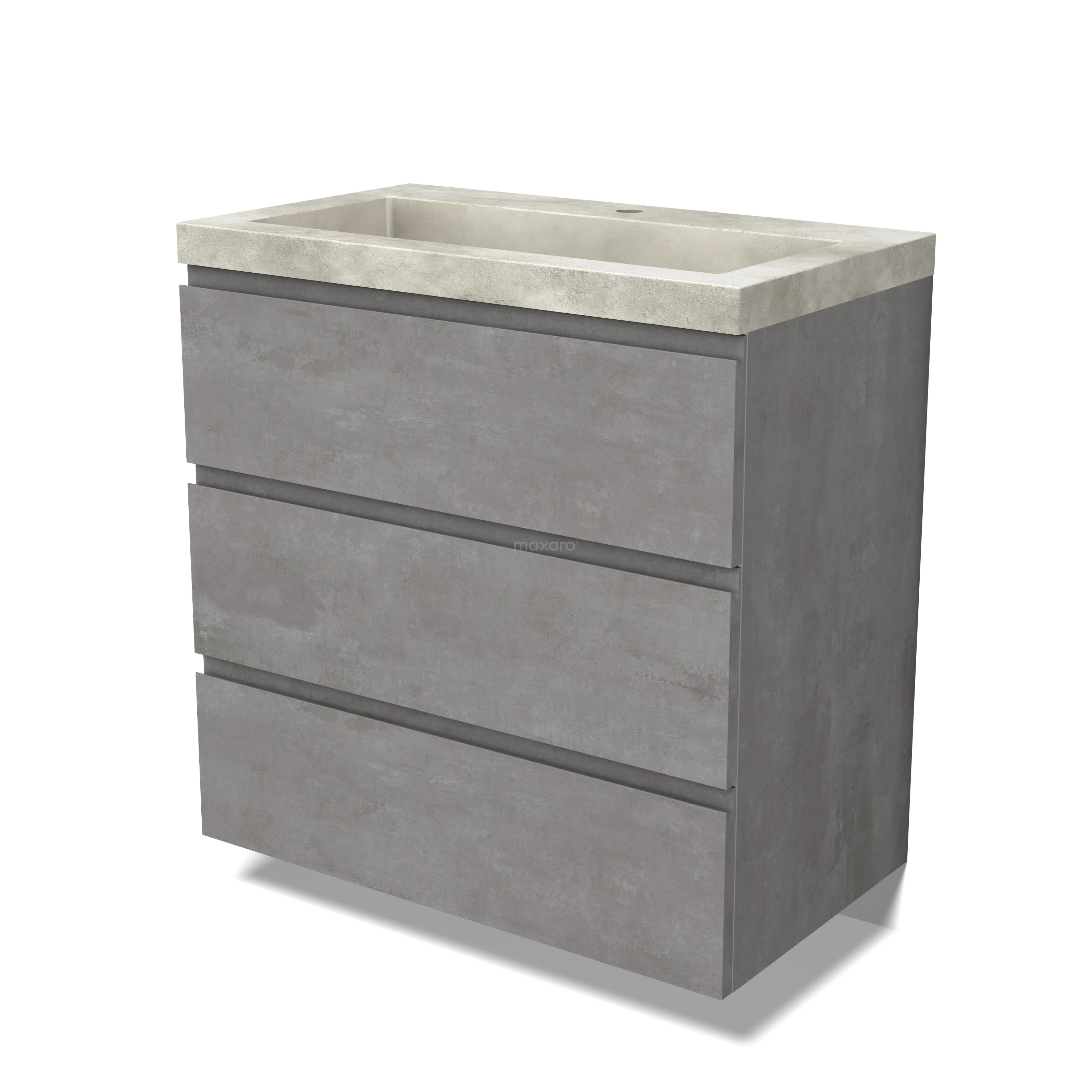 Modulo Waschtische | 80 cm Hellgrauer Beton Grifflos front Beton 3 Schubladen