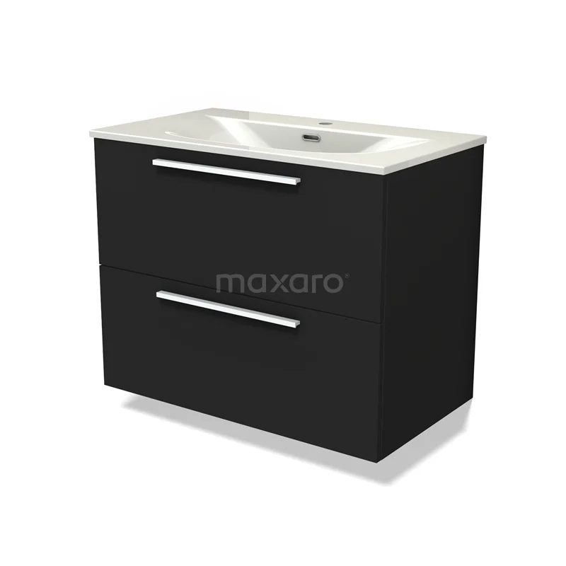 Modulo Waschtische | 80 cm Matt Schwarz Flach front Keramik 2 übereinanderliegende Schubladen