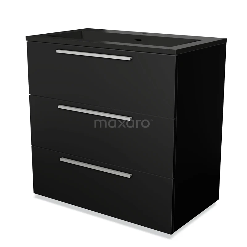 Modulo Waschtische | 80 cm Matt Schwarz Flach front Quarz 3 Schubladen