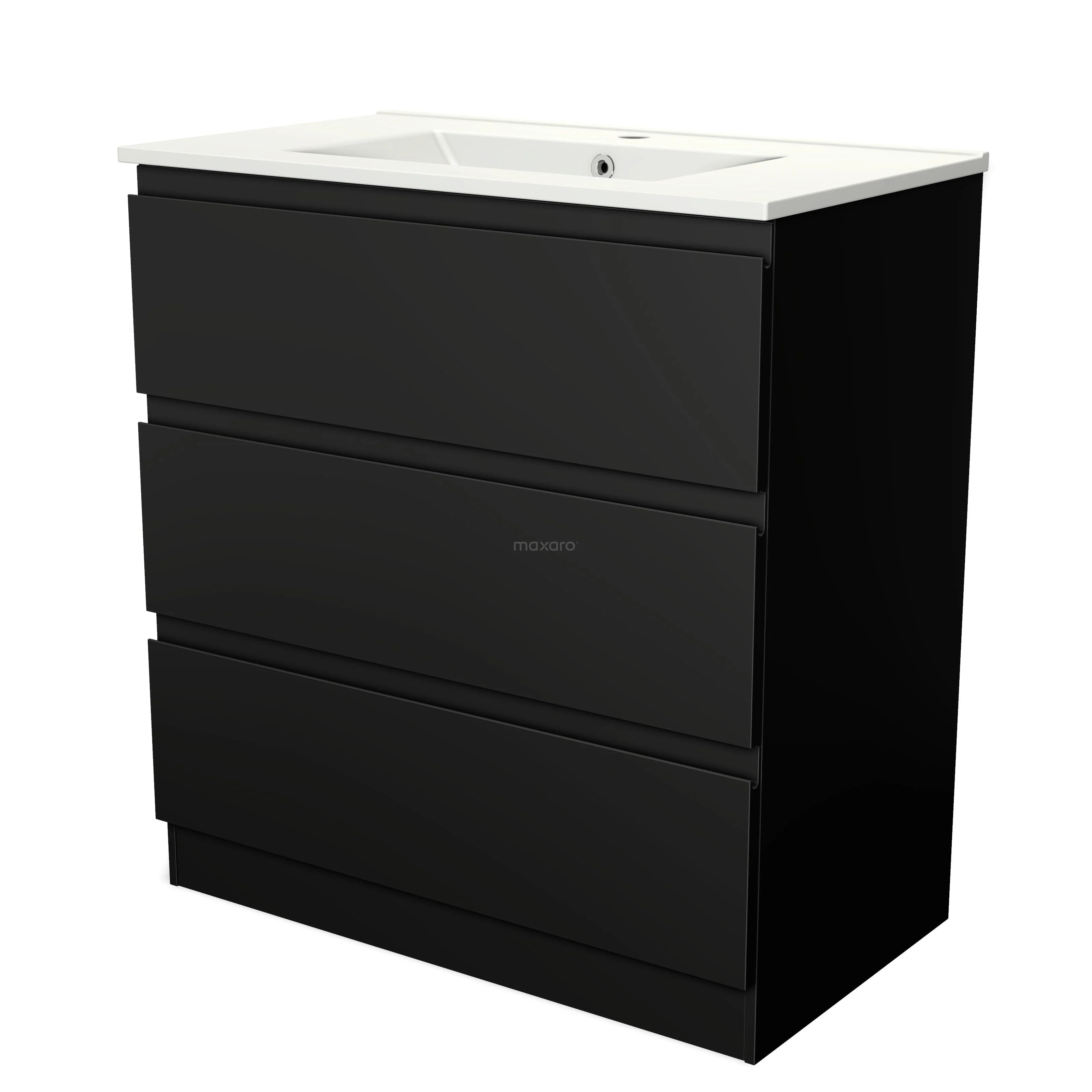 Modulo Waschtische | 80 cm Matt Schwarz Grifflos front Keramik 3 stehende Schubladen