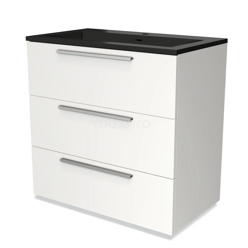 Modulo Waschtische | 80 cm Matt Weiß Flach front Quarz 3 Schubladen