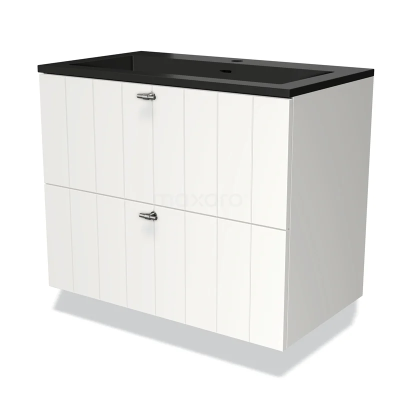 Modulo Waschtische | 80 cm Matt Weiß Lamelle front Quarz 2 übereinanderliegende Schubladen