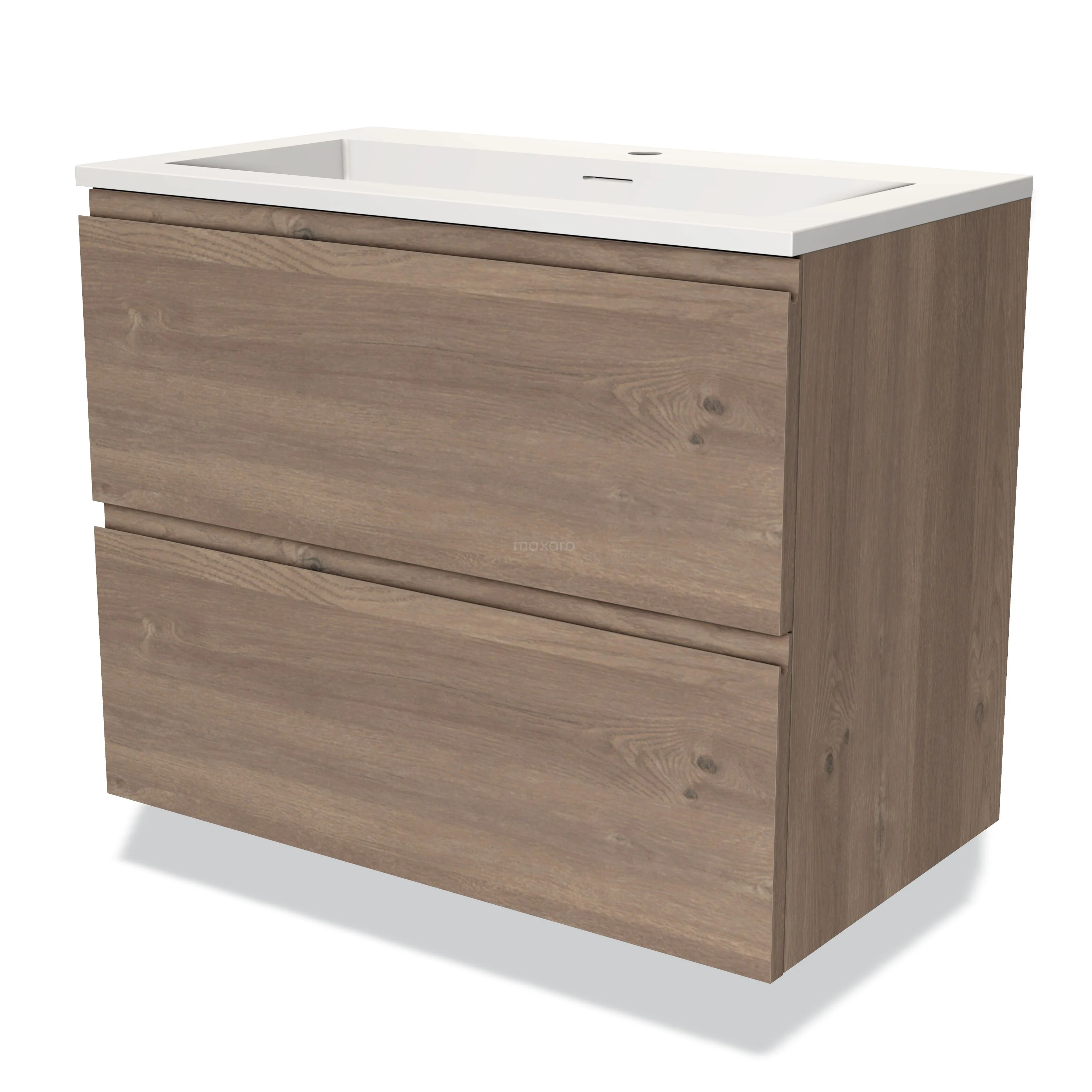 Modulo Waschtische | 80 cm Mittelbraune Eiche Grifflos front Solid Surface 2 übereinanderliegende Schubladen