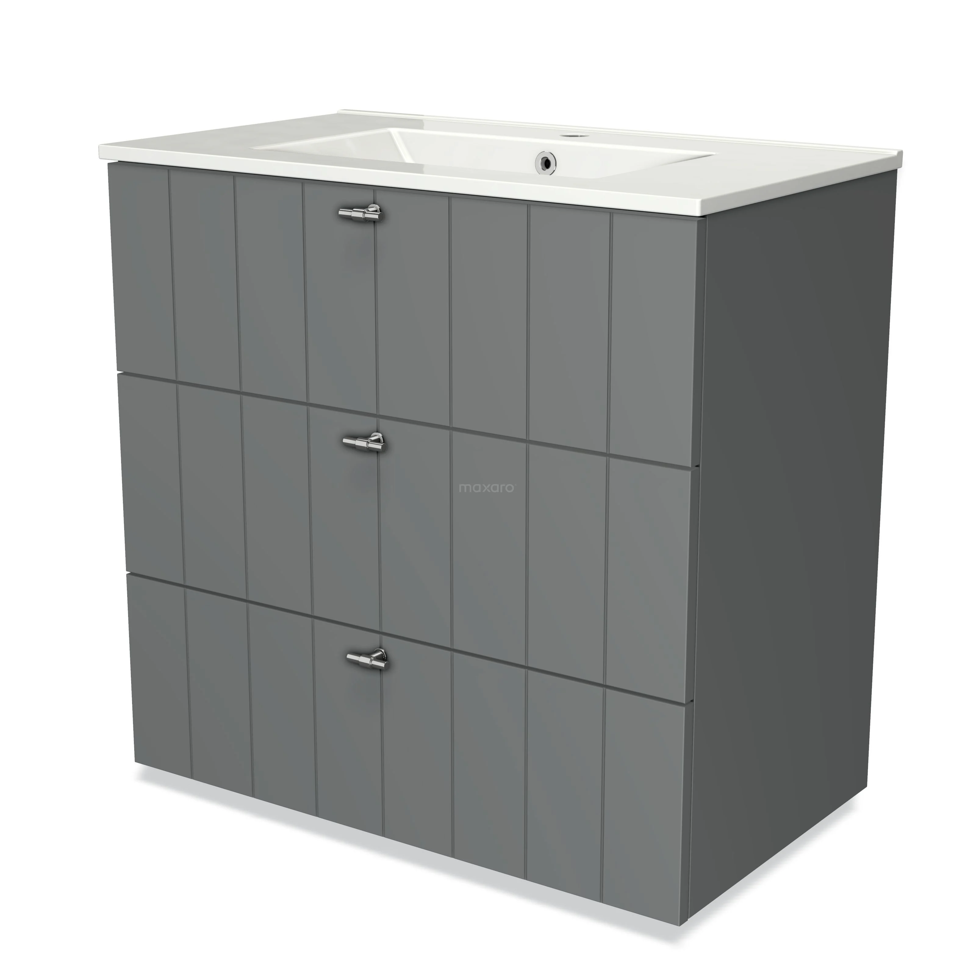 Modulo Waschtische | 80 cm Mittelgrau Lamelle front Keramik 3 Schubladen