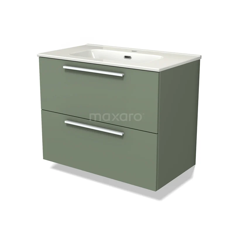 Modulo Waschtische | 80 cm Salbeigrün Flach front Keramik 2 übereinanderliegende Schubladen