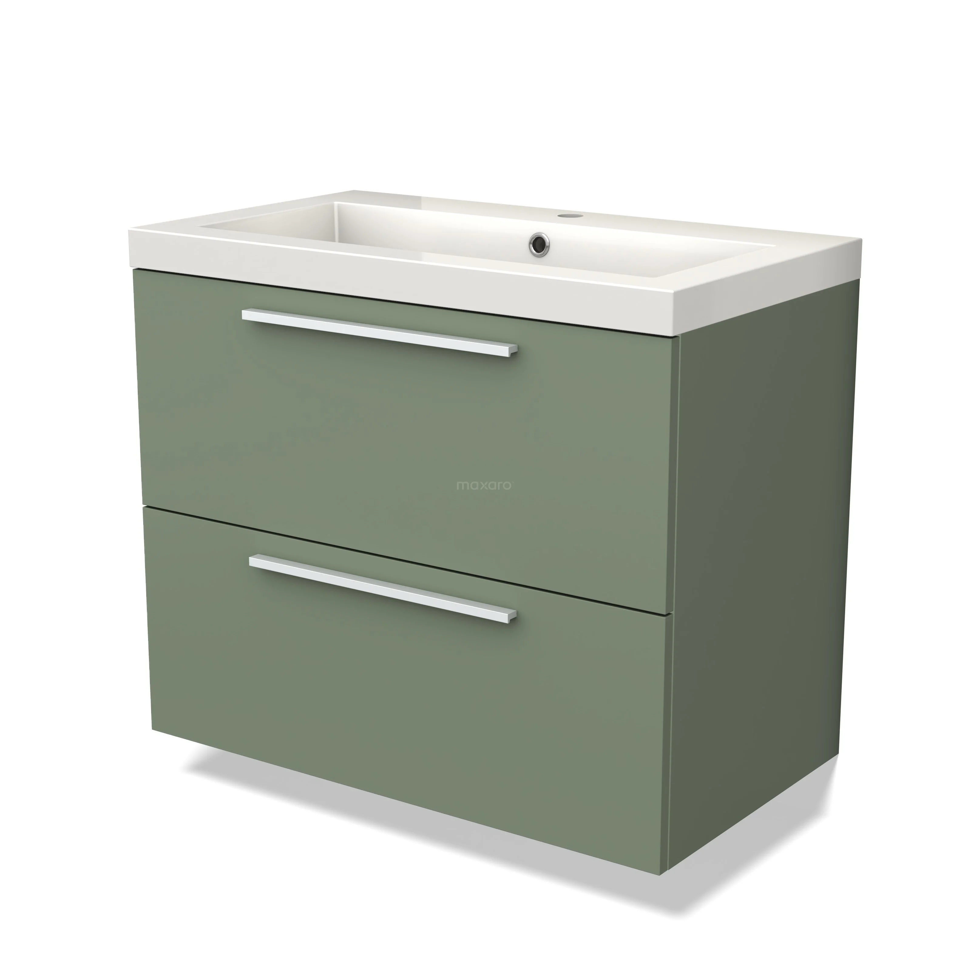 Modulo Waschtische | 80 cm Salbeigrün Flach front Mineralguss 2 übereinanderliegende Schubladen