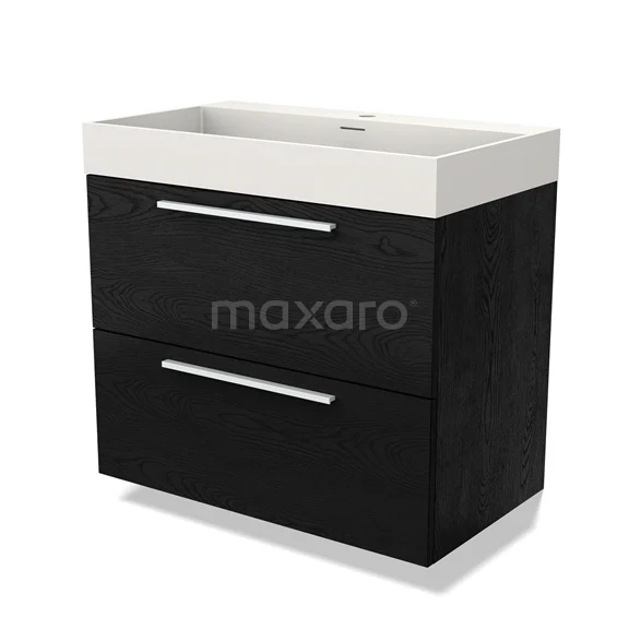Modulo Waschtische | 80 cm Schwarze Eiche Flach front Solid Surface 2 übereinanderliegende Schubladen