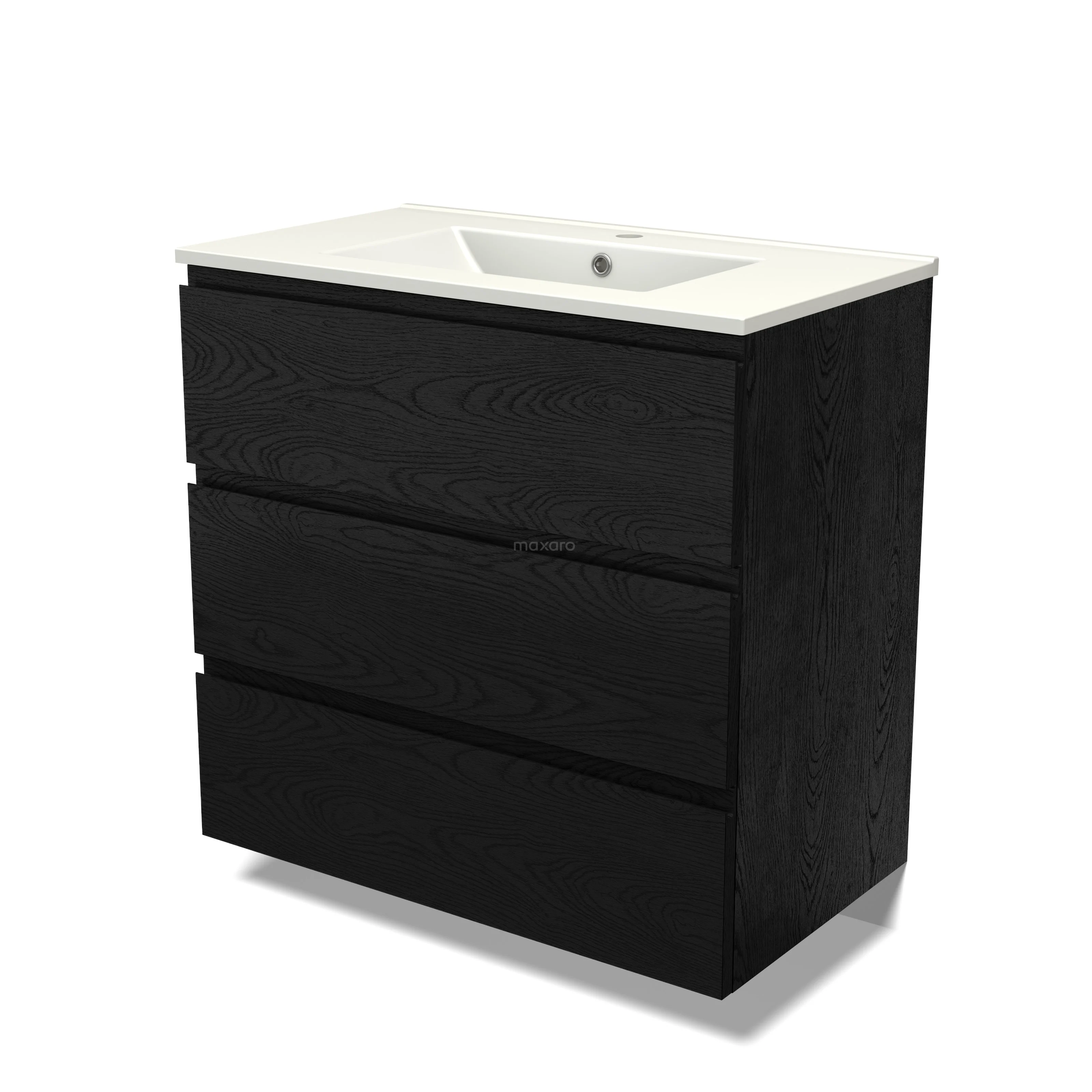 Modulo Waschtische | 80 cm Schwarze Eiche Grifflos front Keramik 3 Schubladen