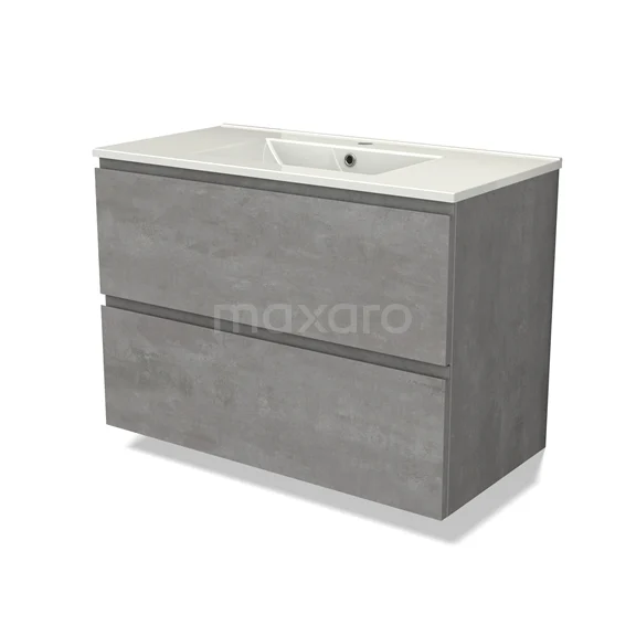 Modulo Waschtische | 90 cm Hellgrauer Beton Grifflos front Keramik 2 übereinanderliegende Schubladen