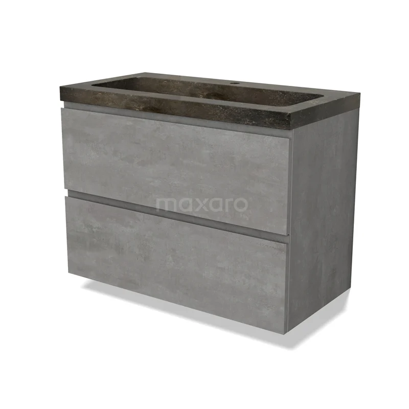 Modulo Waschtische | 90 cm Hellgrauer Beton Grifflos front Naturstein 2 übereinanderliegende Schubladen