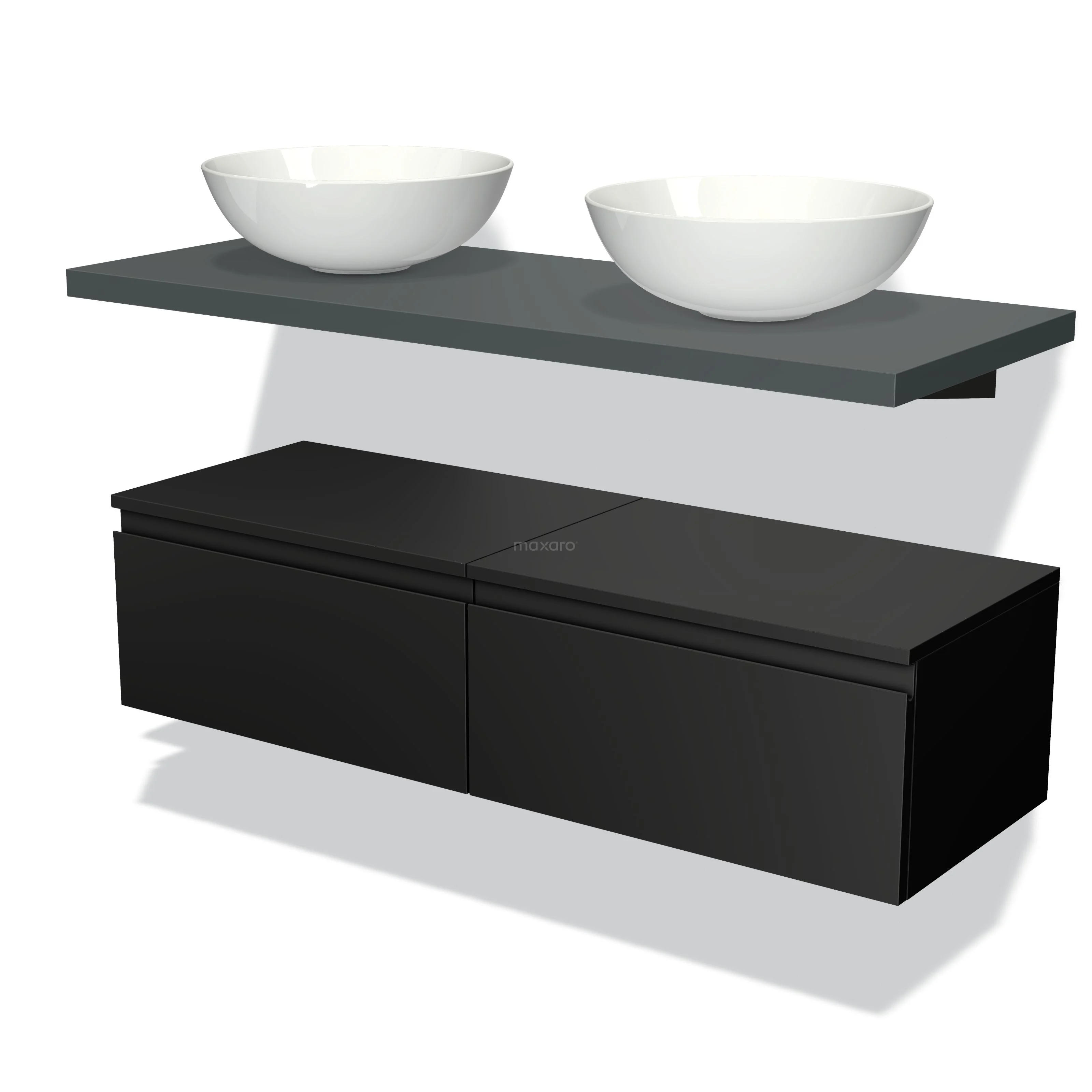 Modulo Plato Badmöbel mit Aufsatzwaschbecken | 120 cm Matt Schwarz Grifflos front Dunkelgrau blatt Tief hängend