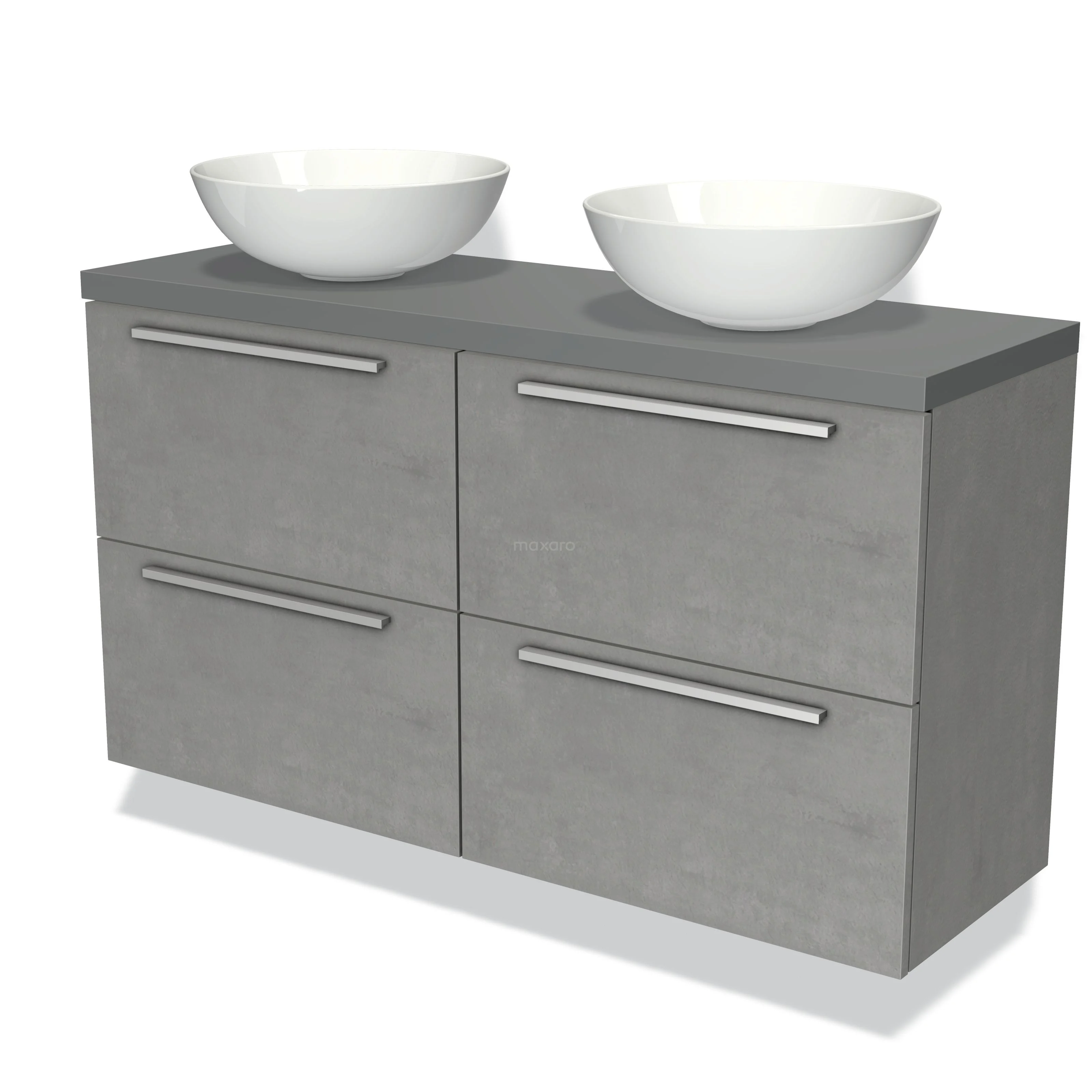 Badmöbel für Aufsatzwaschbecken 120cm Modulo Plato Slim Hellgrauer Beton 4 Schubladen Flache Mittelgraue Platte