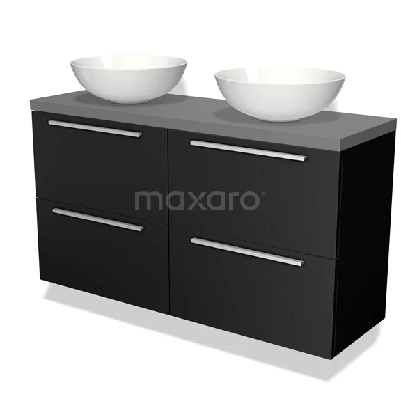 Badmöbel für Aufsatzwaschbecken 120cm Modulo Plato Slim Matt Schwarz 4 Schubladen Flach Mittelgrau Platte
