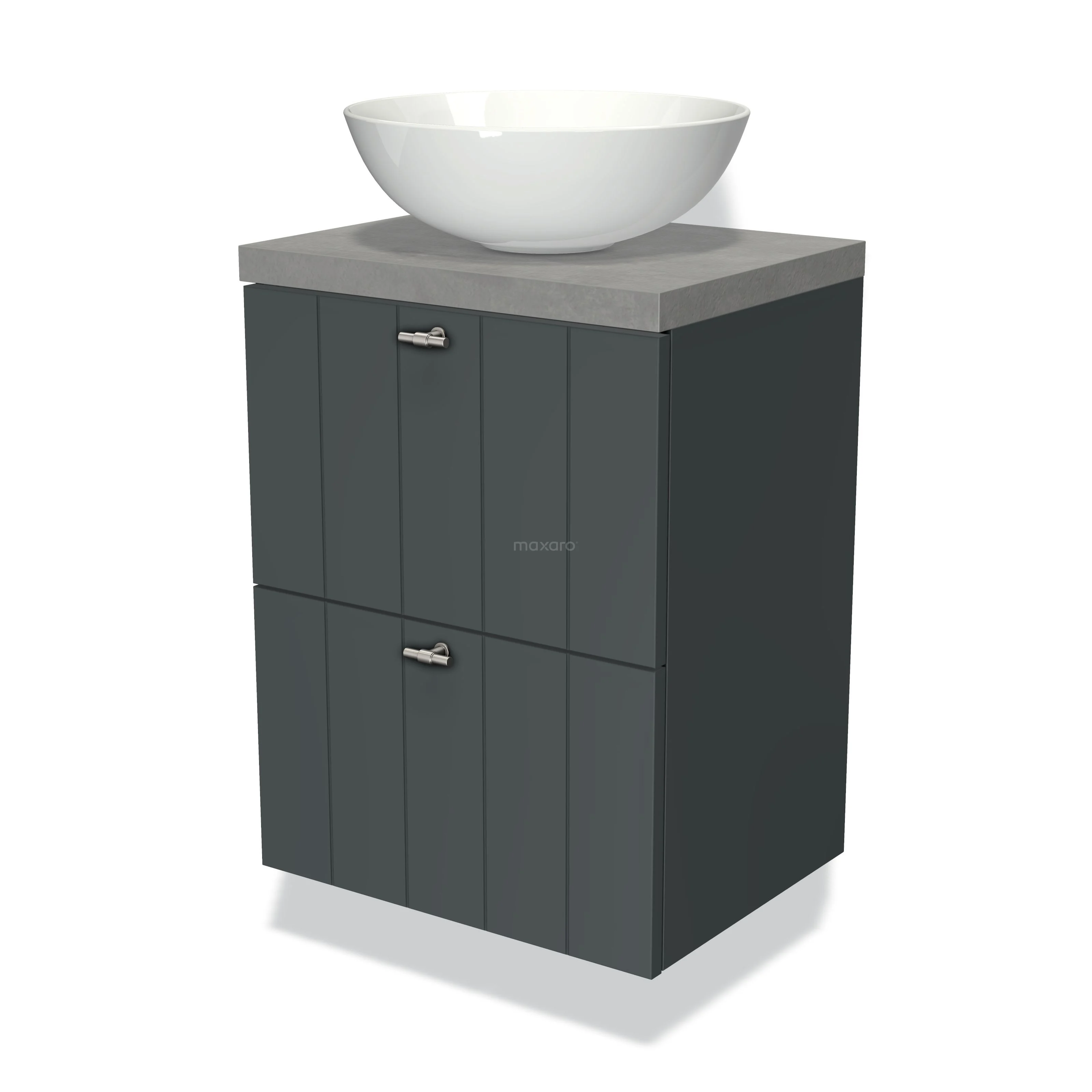 Modulo Plato Slim Badmöbel mit Aufsatzwaschbecken | 50 cm Dunkelgrau Lamelle front Hellgrauer Beton blatt 2 übereinanderliegende Schubladen