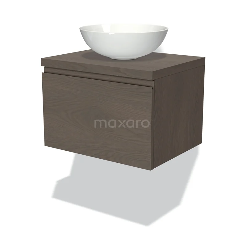 Modulo Plato Badmöbel mit Aufsatzwaschbecken | 60 cm Dunkelbraune Eiche Grifflos front Dunkelbraune Eiche blatt 1 Schublade