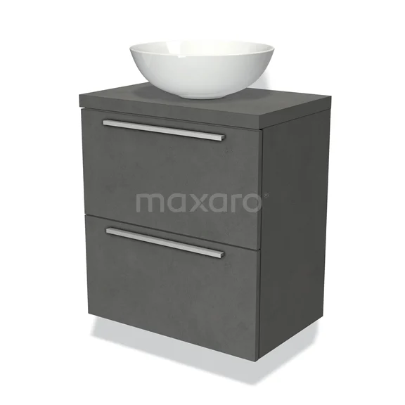 Badmöbel für Aufsatzwaschbecken 60cm Modulo Plato Slim Dunkelgrau Beton 2 Schubladen Flach