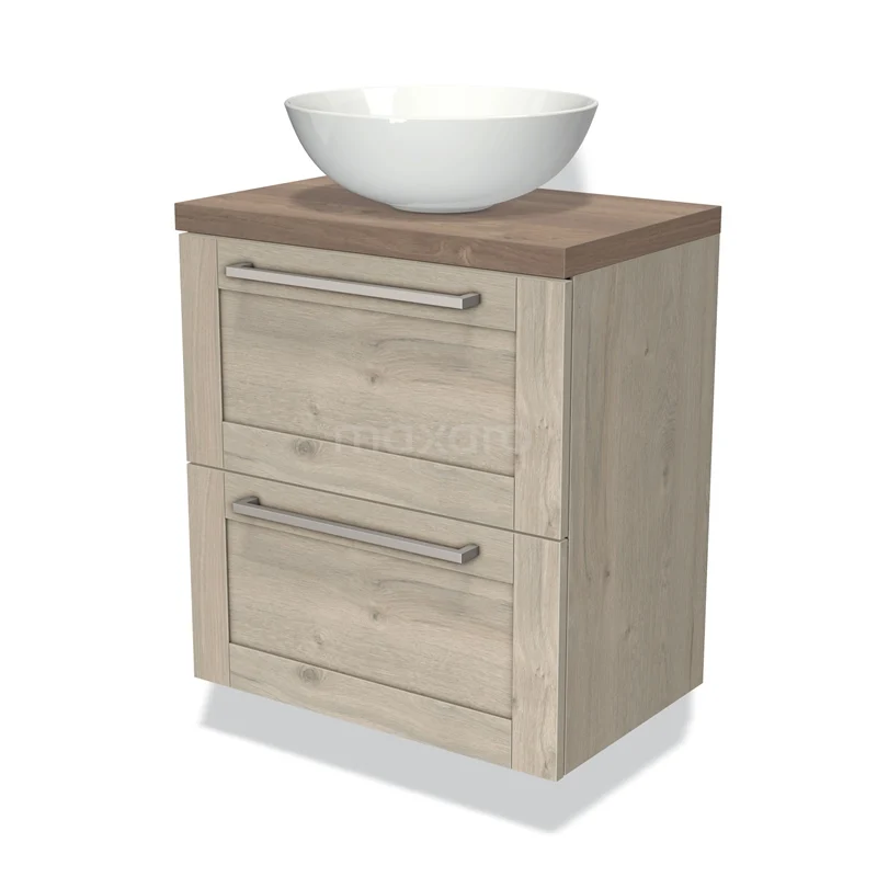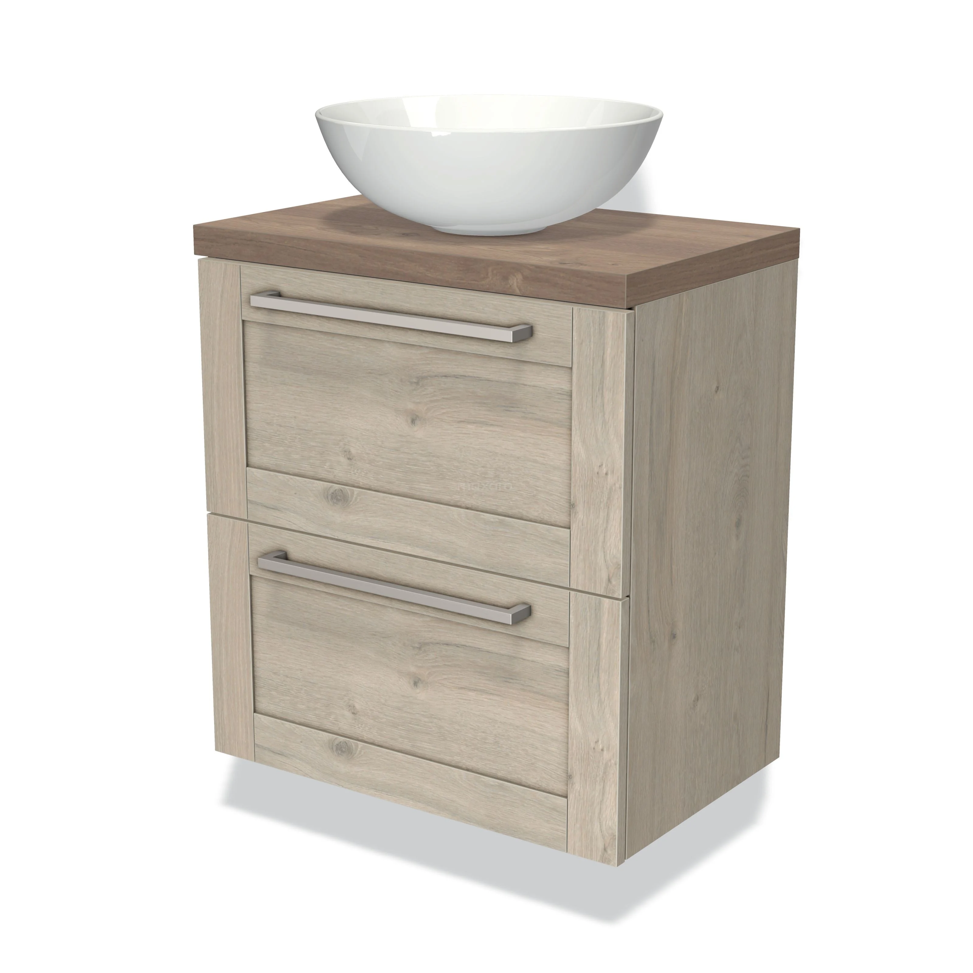 Badmöbel für Aufsatzwaschbecken 60cm Modulo Plato Slim hellgraue Eiche 2 Schubladen Rahmen