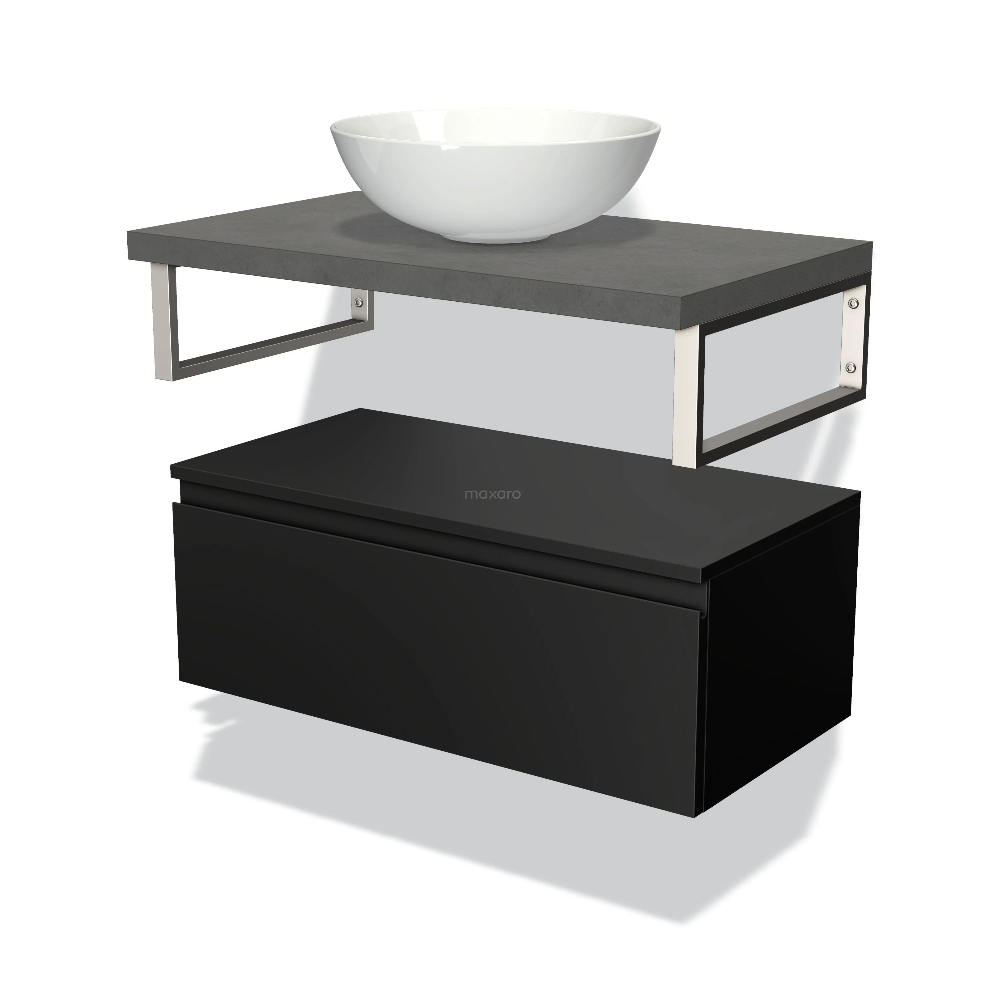 Badmöbel für Aufsatzwaschbecken 80 cm Modulo Plato Matt Schwarz 1 Schublade Grifflos Dunkelgrau Beton Platte