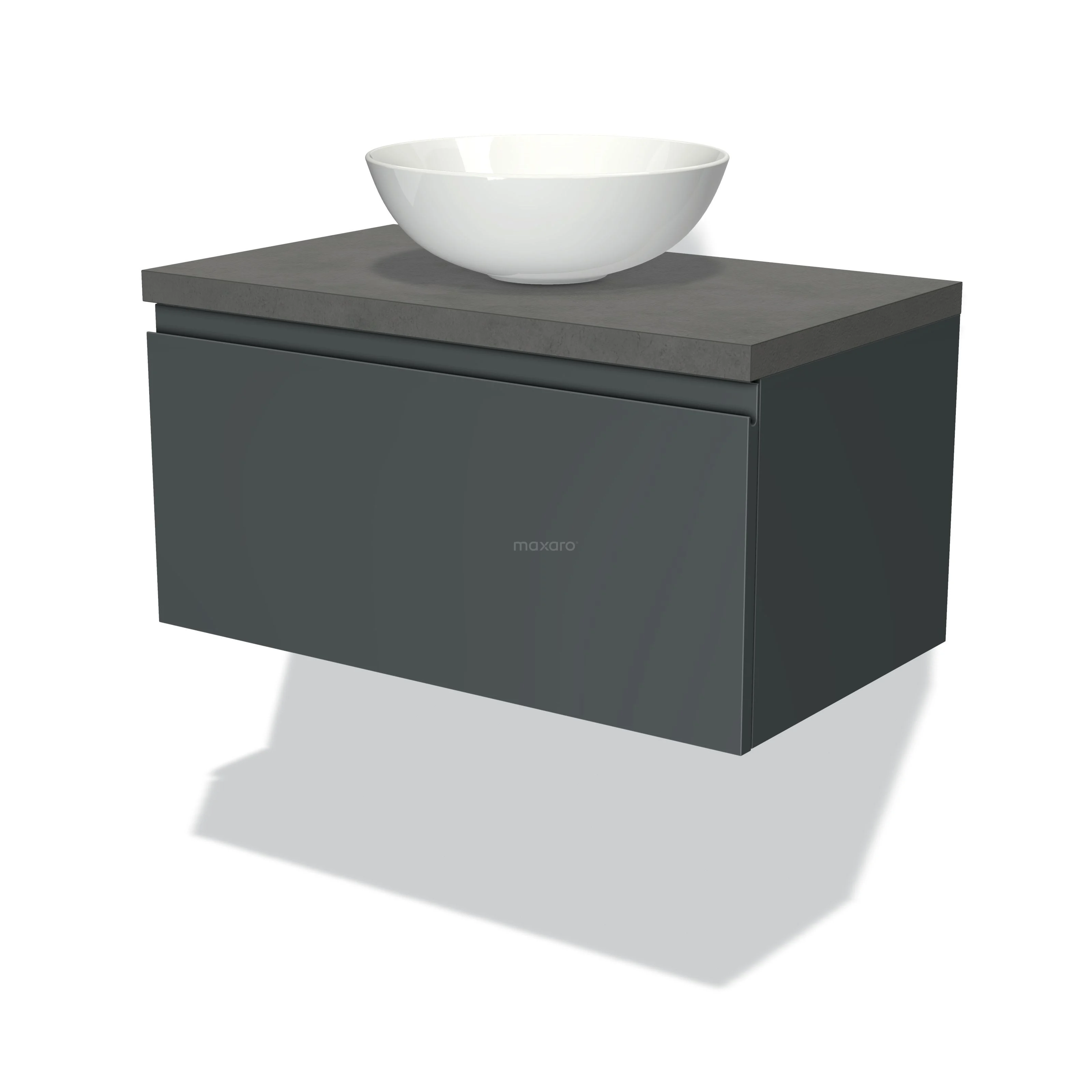 Badmöbel für Aufsatzwaschbecken 80cm Modulo Plato Dunkelgrau 1 Schublade grifflos Dunkelgrauer Beton Platte