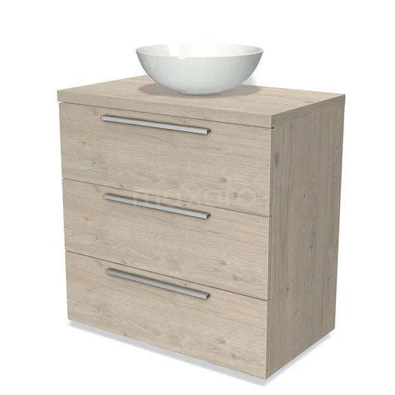 Badmöbel für Aufsatzwaschbecken 80cm Modulo Plato Hellgraue Eiche 3 Schubladen Flach