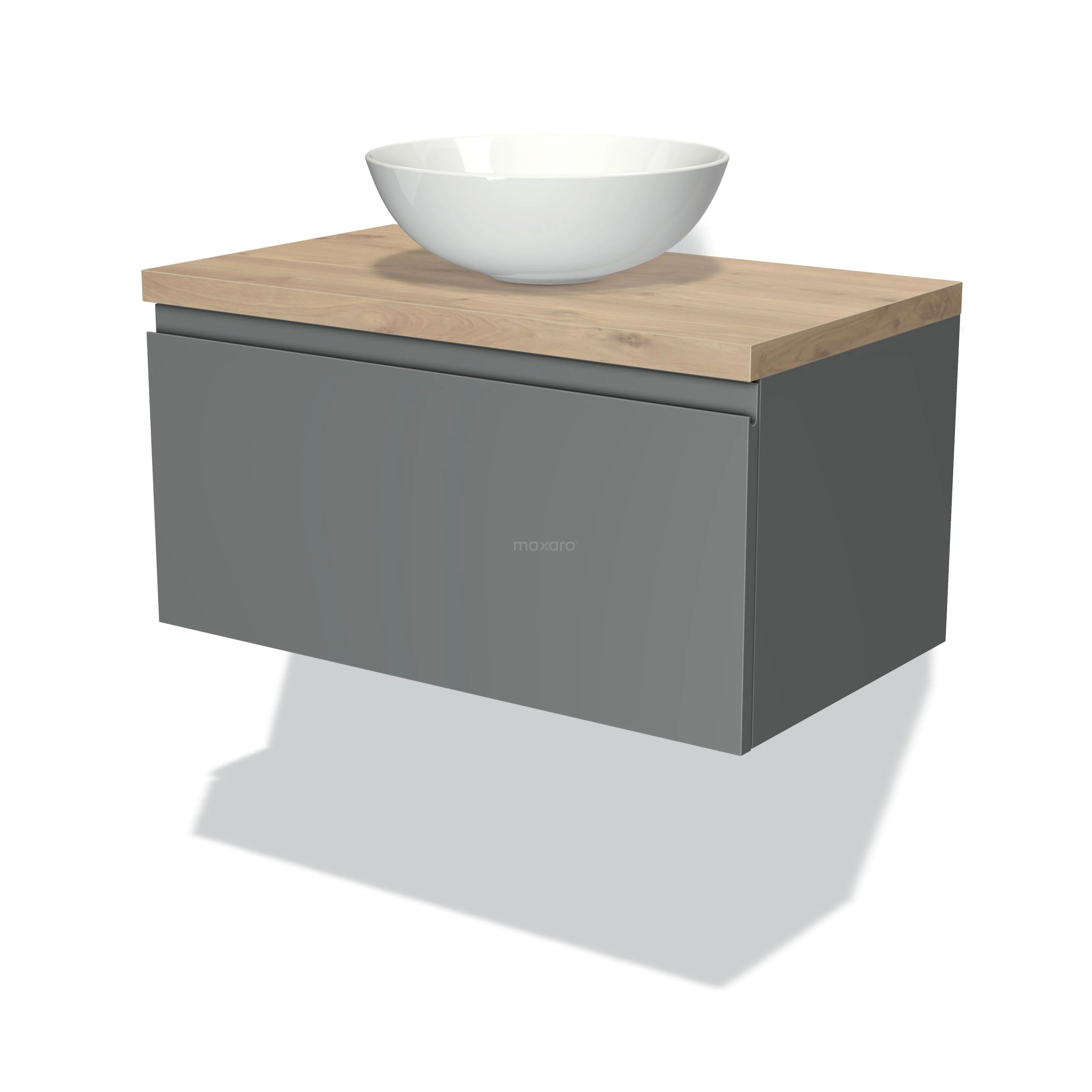 Badmöbel für Aufsatzwaschbecken 80cm Modulo Plato Mittelgrau 1 Schublade Grifflos Hellbraune Eiche Platte