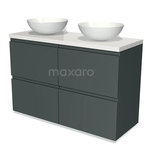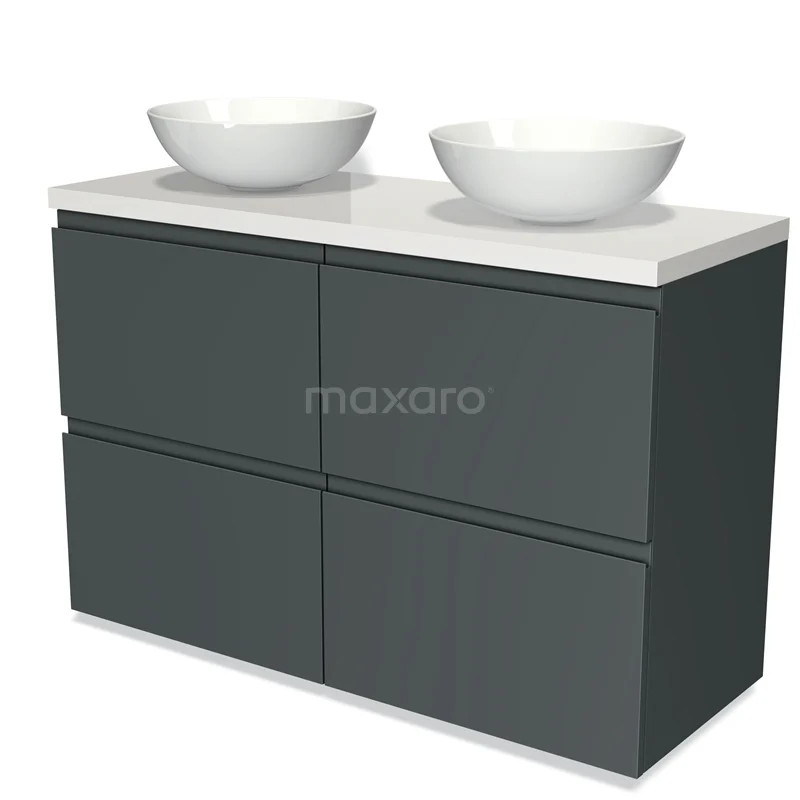 Modulo Plato Badmöbel mit Aufsatzwaschbecken | 120 cm Dunkelgrau Grifflos front Hochglanz Weiß blatt 4 hohe Schubladen