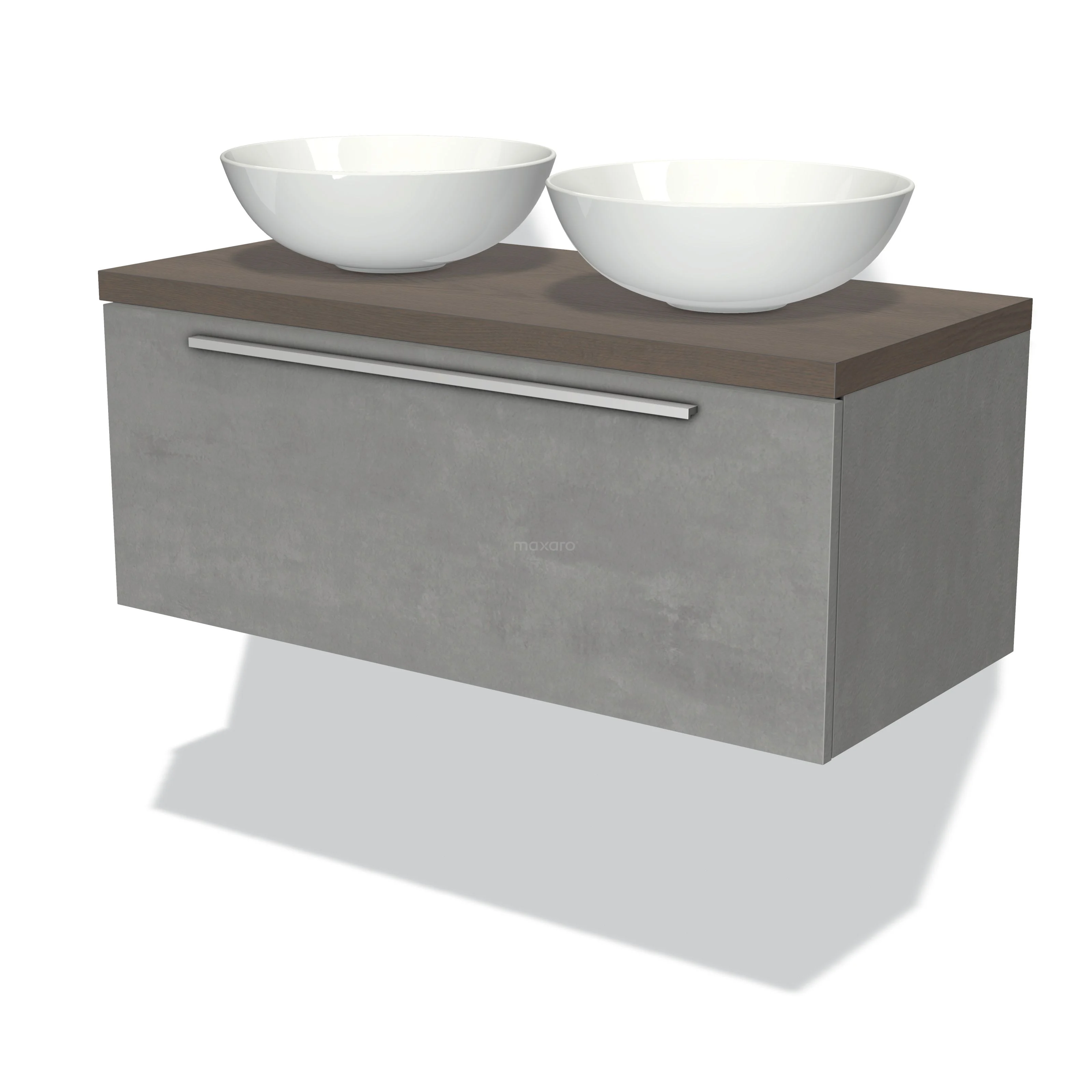 Badmöbel für Waschtischunterschrank mit Konsole 100cm Modulo Plato hellgrauer Beton 1 Schublade flach dunkelbraune Eiche Platte