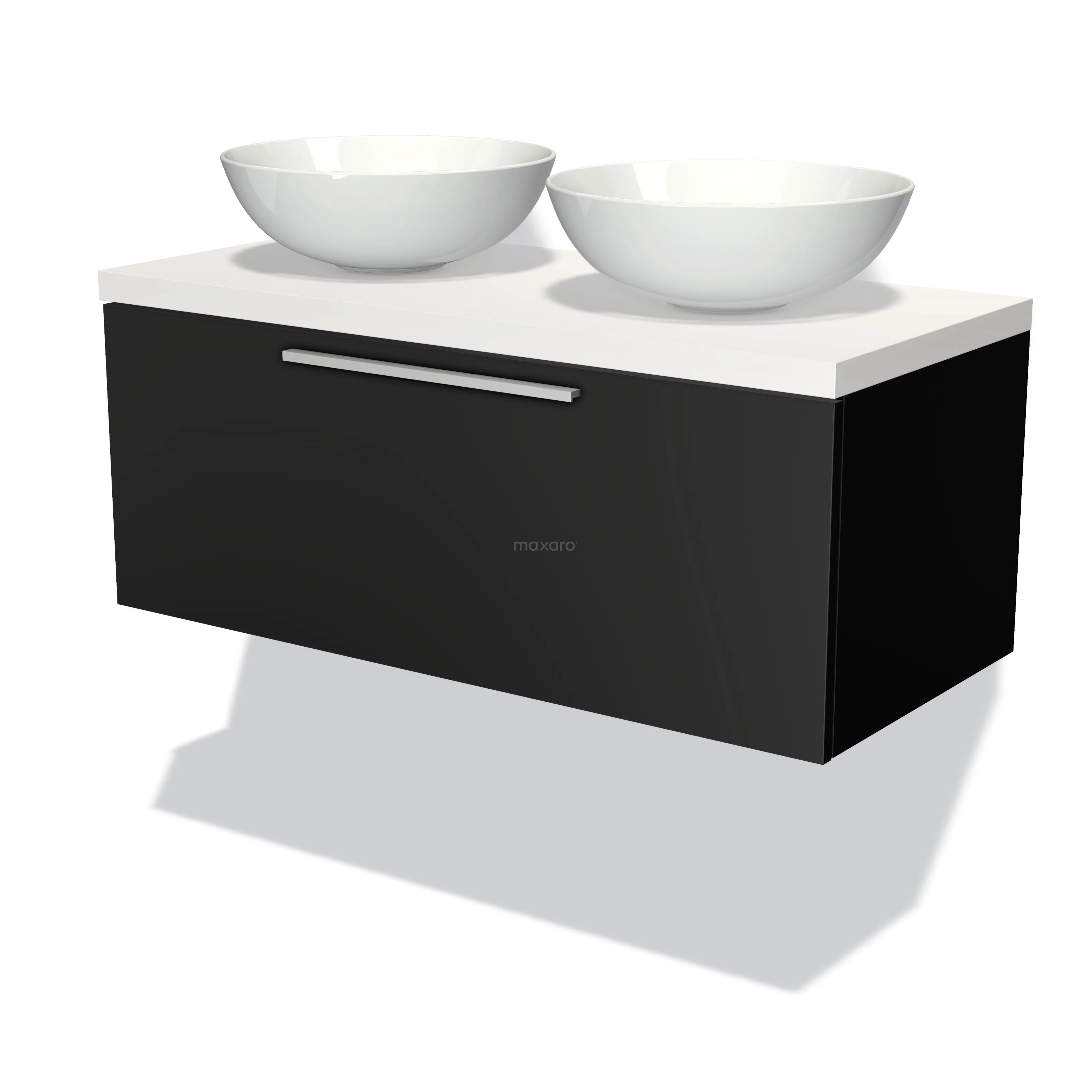 Badmöbel für Waschtischunterschrank mit Konsole 100cm Modulo Plato Matt Schwarz 1 Schublade Flach Matt Weiß Platte